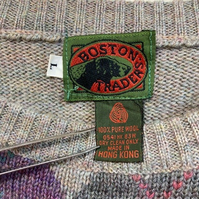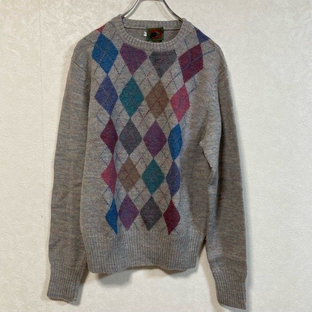 A380 ボストンズトレーダー L アメリカ古着 香港製 ウール100% アーガイル柄 ニット グレー BOSTONSTRADER メンズ