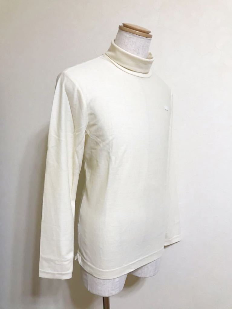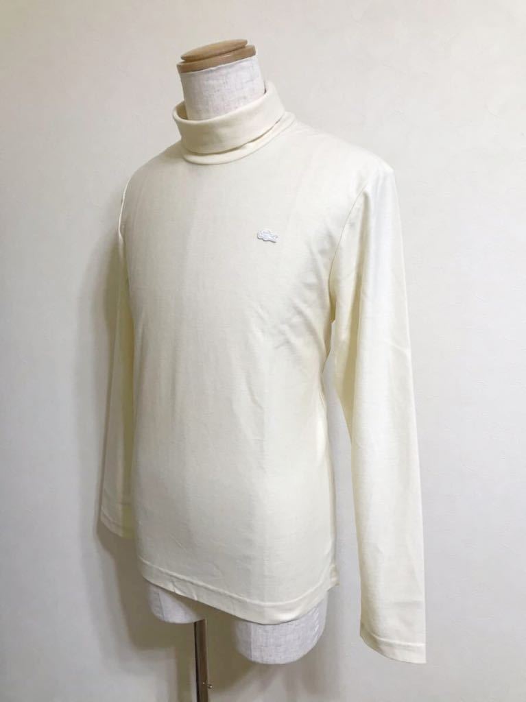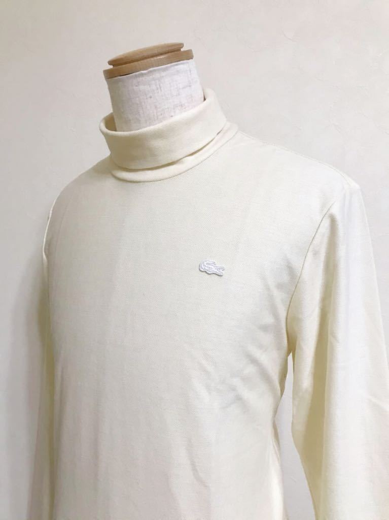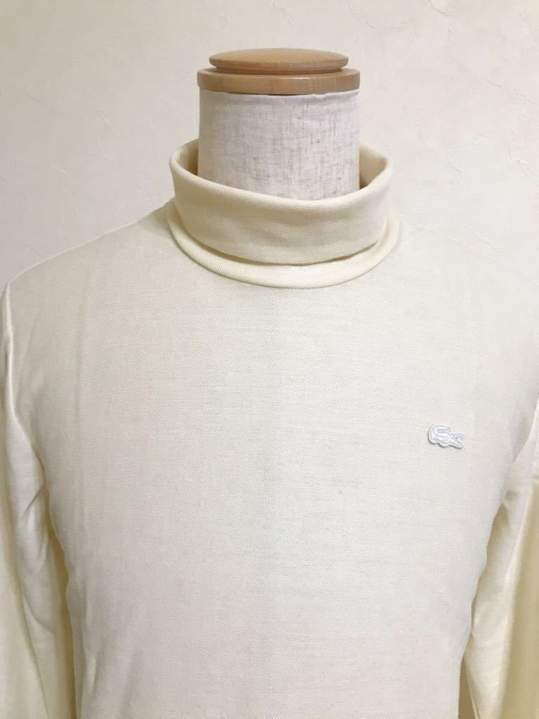 【美品】 LACOSTE SLIM FIT ラコステ スリムフィット ウール タートル シャツ トップス USサイズM 長袖 クリーム 日本製 TH611E 毛100%