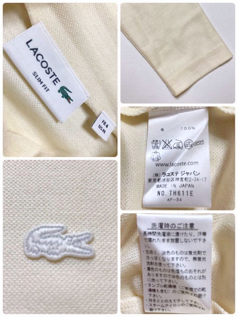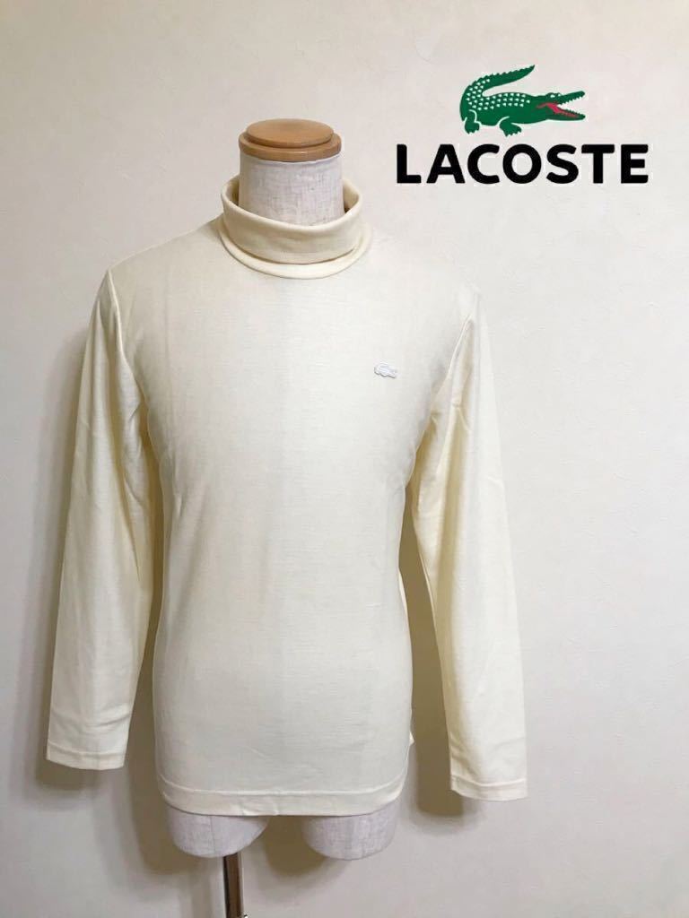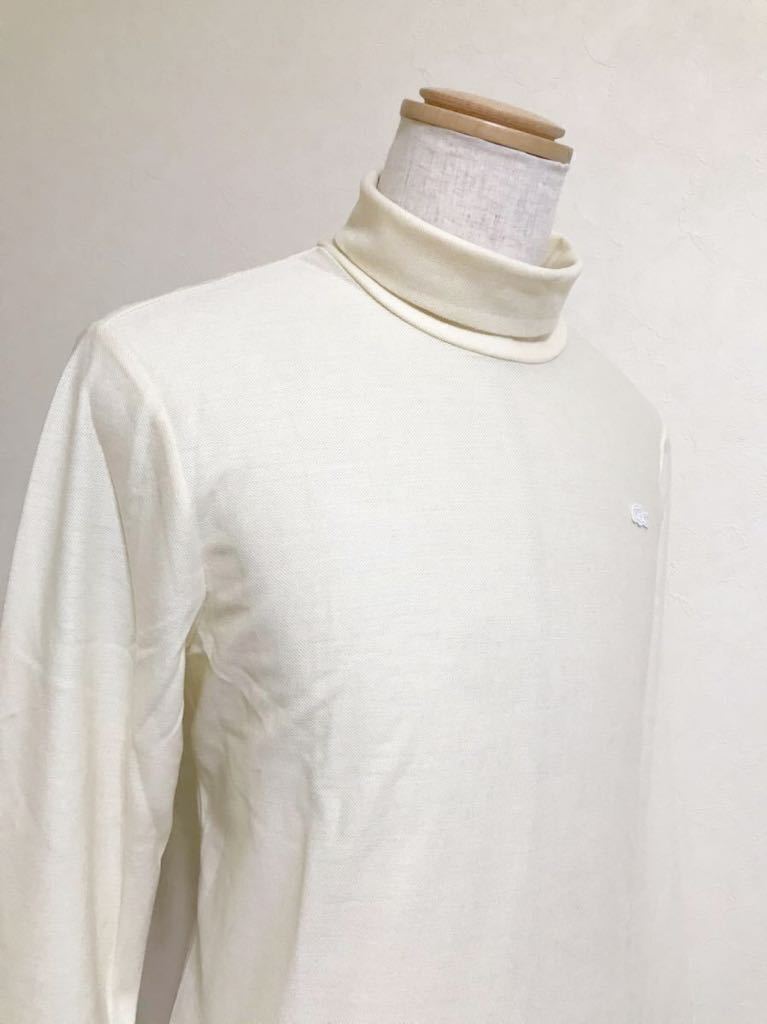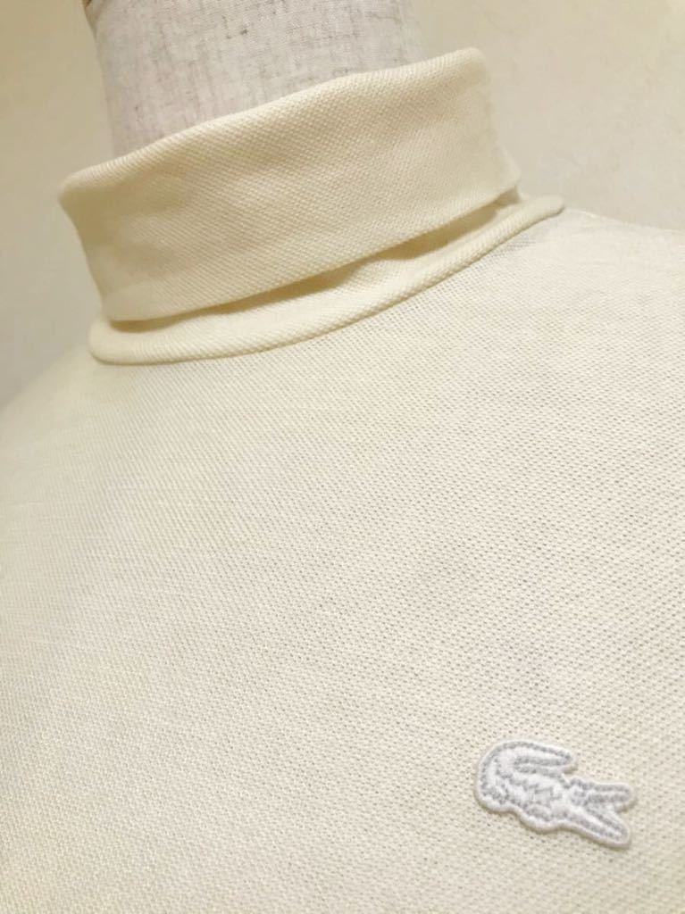 【美品】 LACOSTE SLIM FIT ラコステ スリムフィット ウール タートル シャツ トップス USサイズM 長袖 クリーム 日本製 TH611E 毛100%