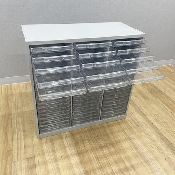 ■取り扱い番号 CT-877595B ■仕様 メーカー : 内田洋行 ウチダ 製品名 : トレイキャビネット 3列20段 システムトレーキャビネット B4対応 色素材 : ペールグレイ 外寸 : 幅900mm 奥行き400mm 高さ880mm ランク : Bランク ■特徴 トレイ:浅型60枚 細かな書類や伝票の整理に便利なトレイキャビネット。書類の仕分けに便利で、経理・総務など多くの書類をきめ細かく分類し、管理する必要がある方におすすめです。 |