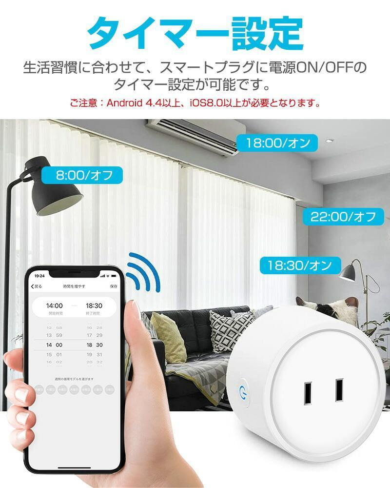 【2個セット】Wi-Fi スマートプラグ 音声コントロール スマートソケット スマホ対応 リモート機能 アプリコントロール 遠隔操作可能