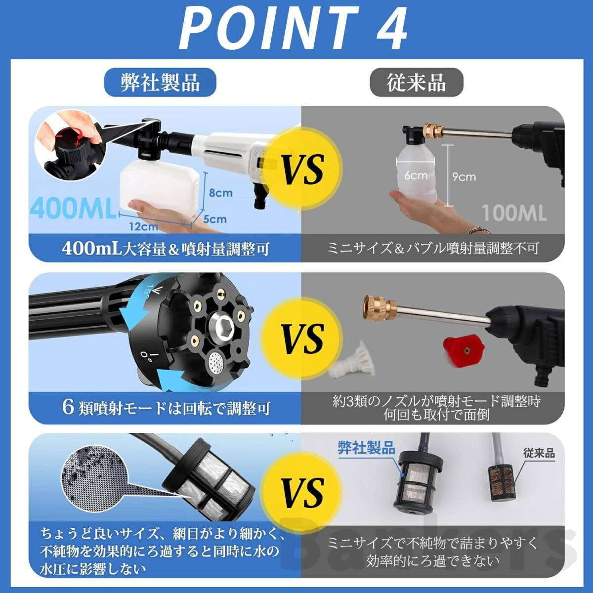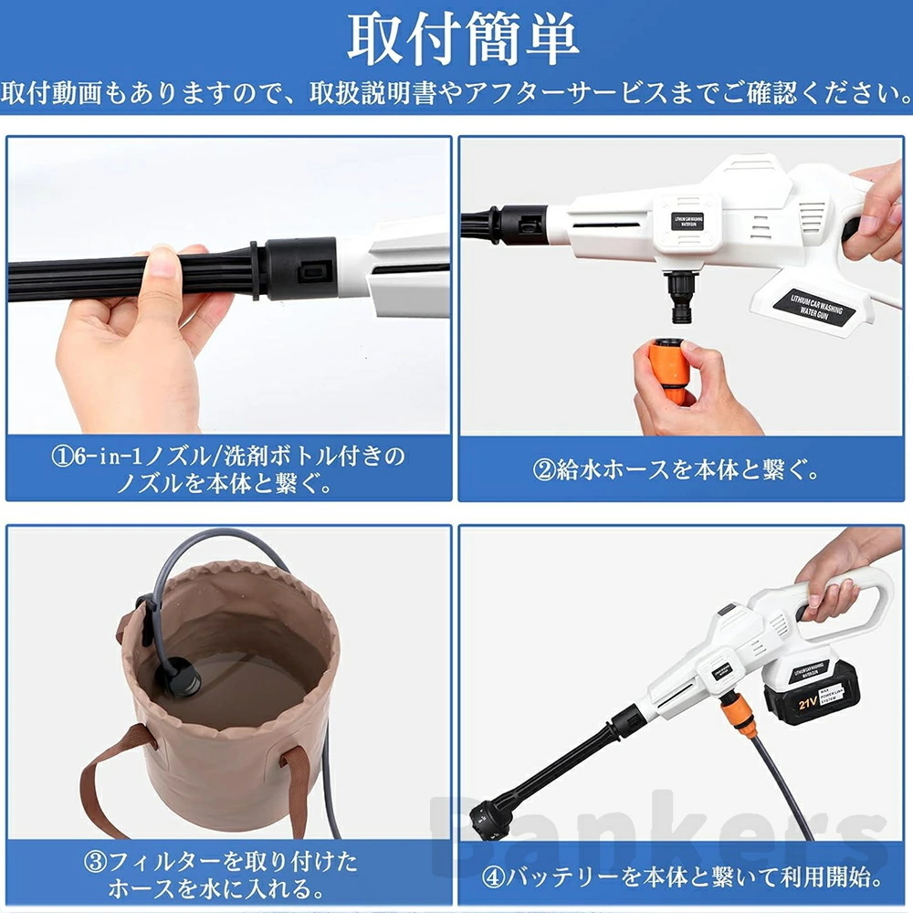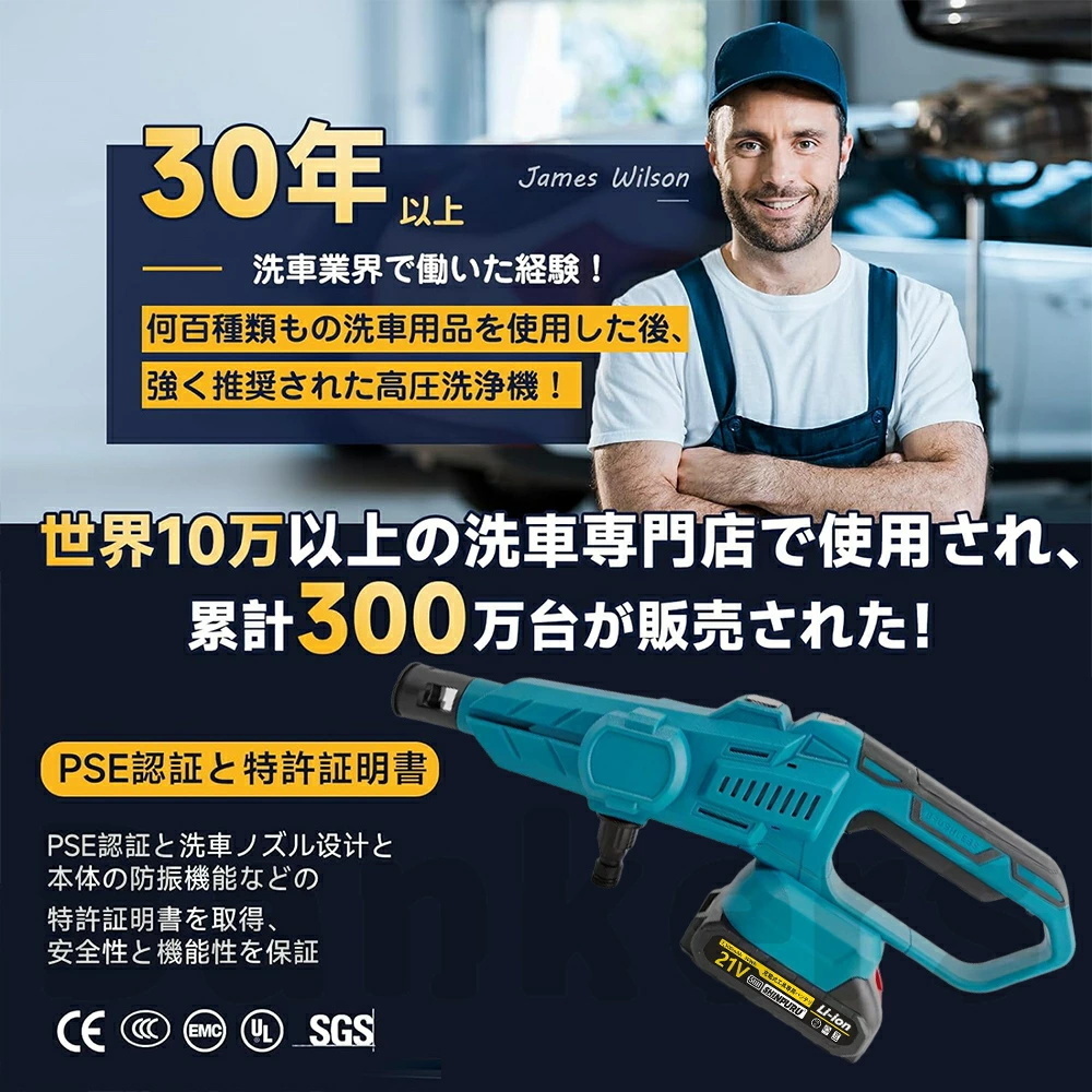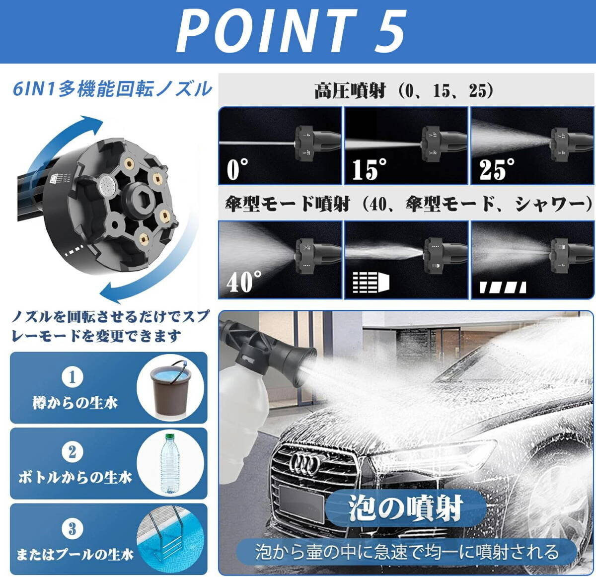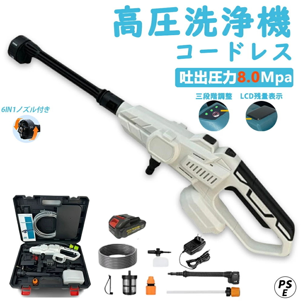高圧洗浄機 コードレス 充電式 3段階水圧 6in1 バッテリー1個付き マキタバッテリー互換 8MPa吐出圧力 強力噴射 自吸式 収納ケース付 洗車