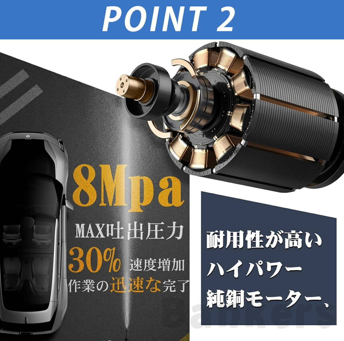 高性能純銅パワーモーターが搭載されており、8Mpaの吐出圧力で7.0L/minの水流を噴射し、頑固な汚れを流す家庭用高圧洗浄機です。