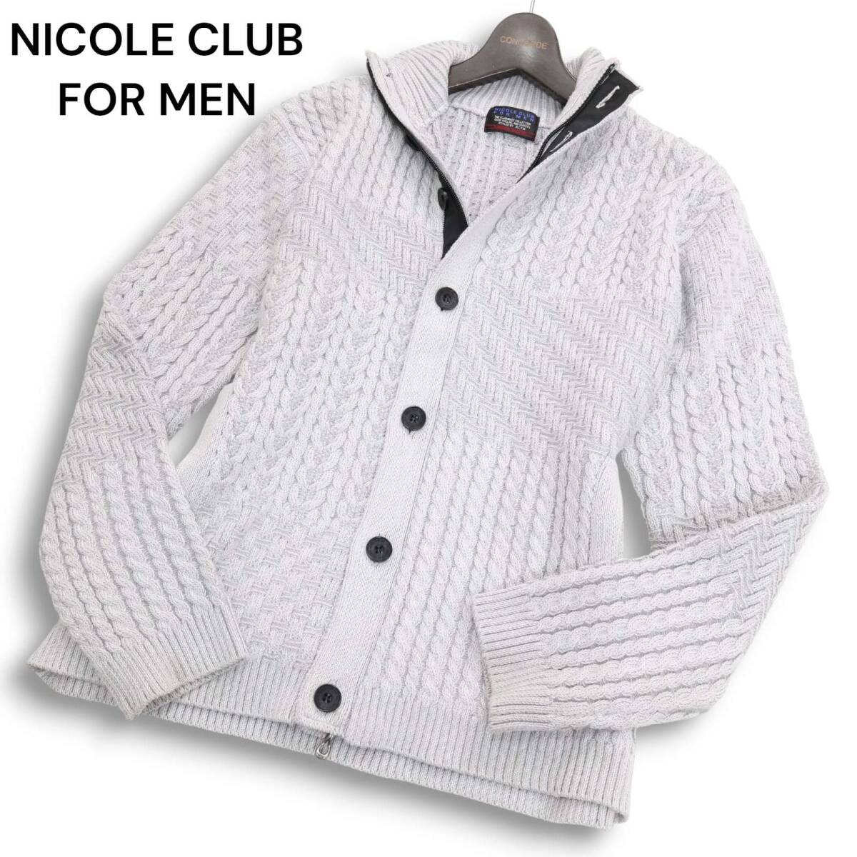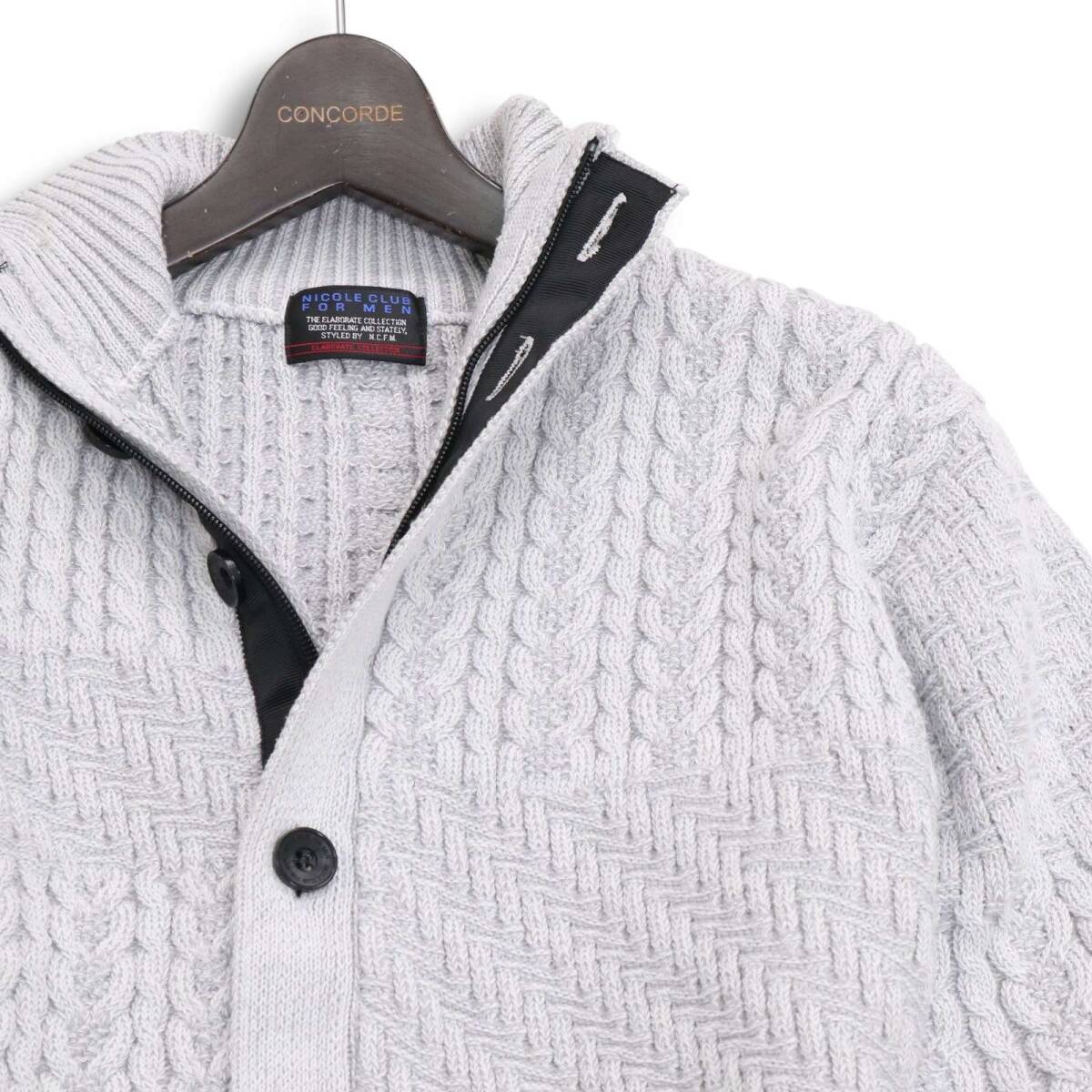 24AW★ NICOLE CLUB FOR MEN ニコルクラブ フォーメン 編地切替★ スタンド ニット カーディガン ジャケット Sz.46 メンズ
