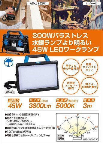展示品 美品 アウトレット ハタヤ HATAYA LEDワークランプ LWY-45R ワークライト 作業灯 照明 防塵 防滴 外装不良