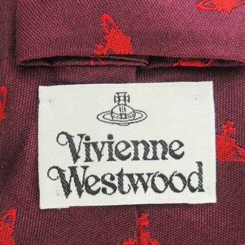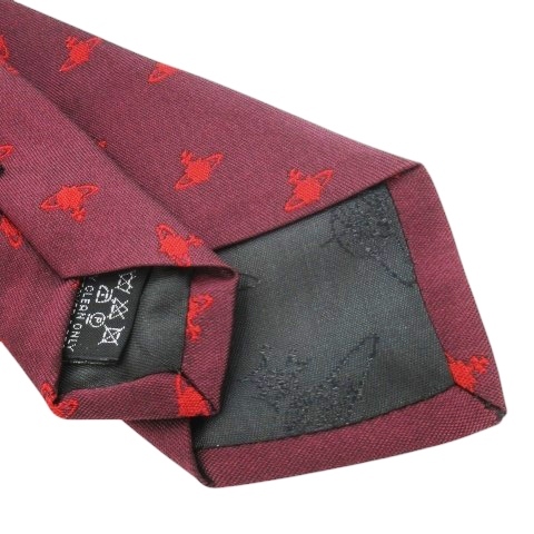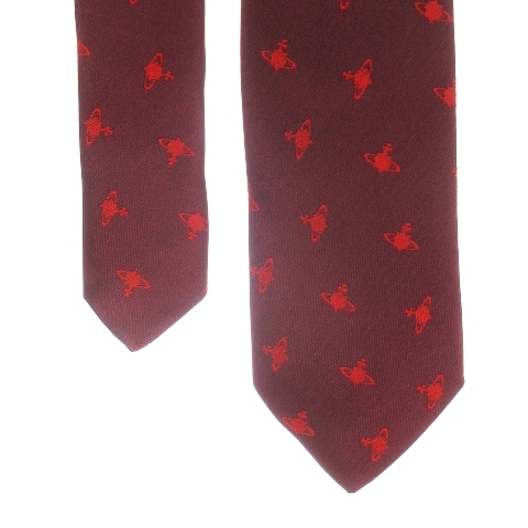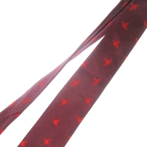 ヴィヴィアンウエストウッド Vivienne Westwood ネクタイ ナロー シルク 絹 オーブロゴ 総柄 赤 レッド /CK18 ■GY18 メンズ