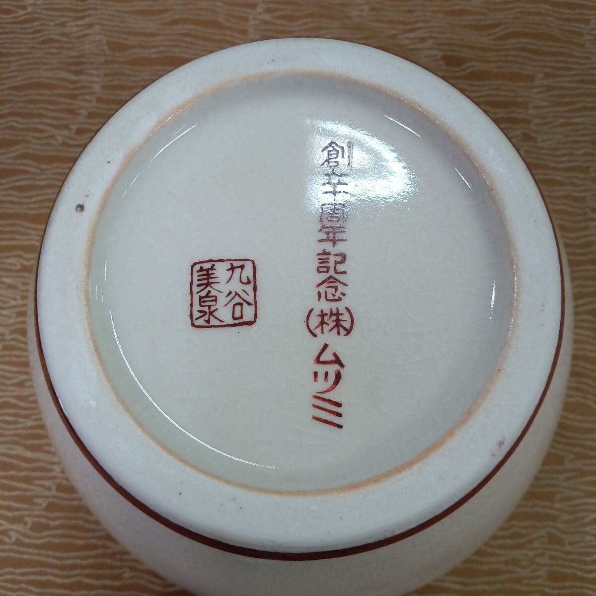 花瓶の底と箱の蓋裏に「創立十周年記念(株)ムツミ」の文字が入っています。
