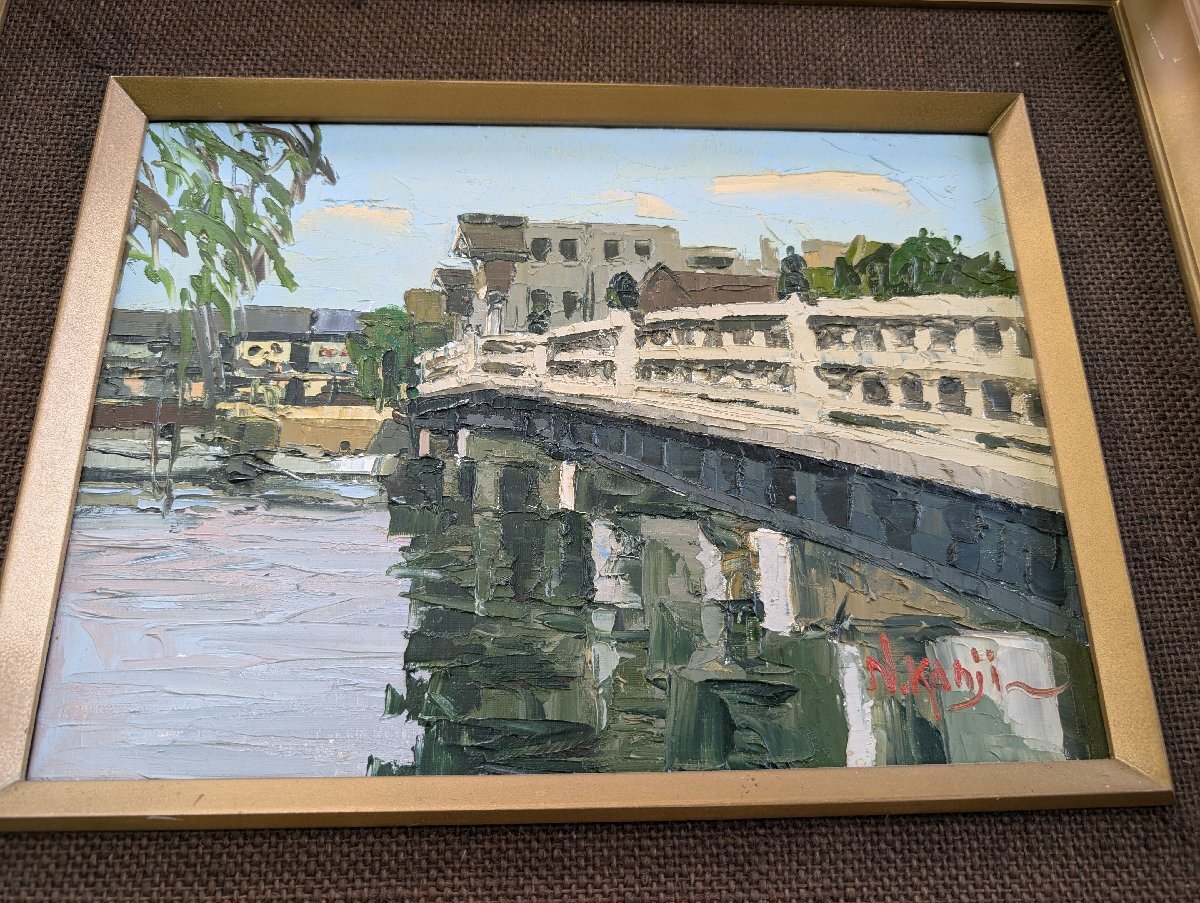 ①中古★現状品★油絵★N.Kanji~★茶道★花道★額縁★風景画★アートパネル★玄関★壁掛け★筆文字アート★絵画