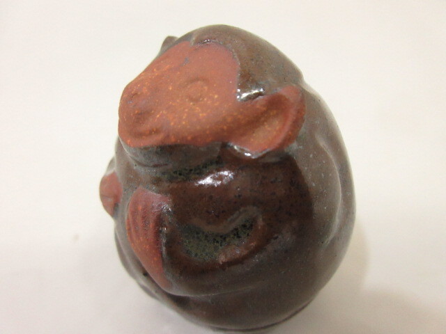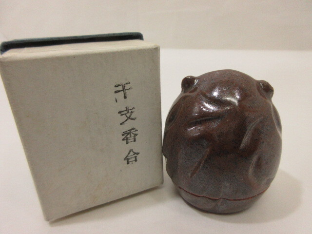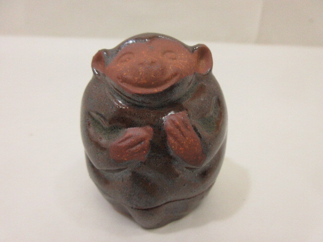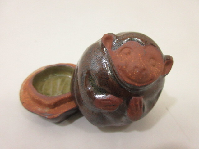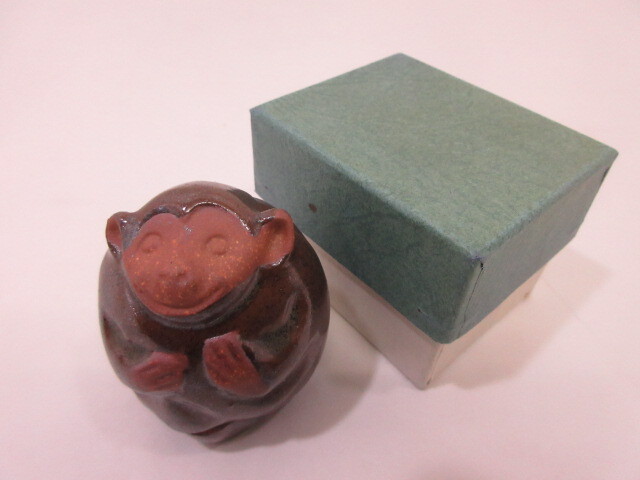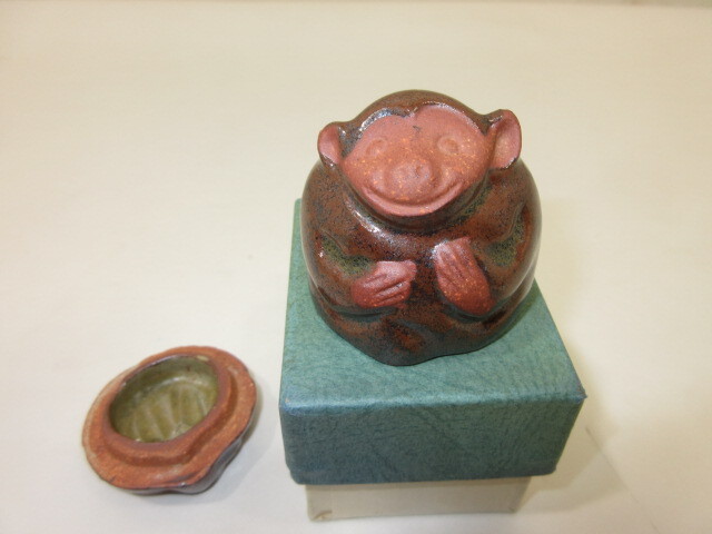 中古道具!朱石窯のやや古い!申 (猿) 香合です。直径約5cm×高さ6cm 可愛い お猿さんです。化粧箱はヤケ汚れ有り。どうぞ宜しく。