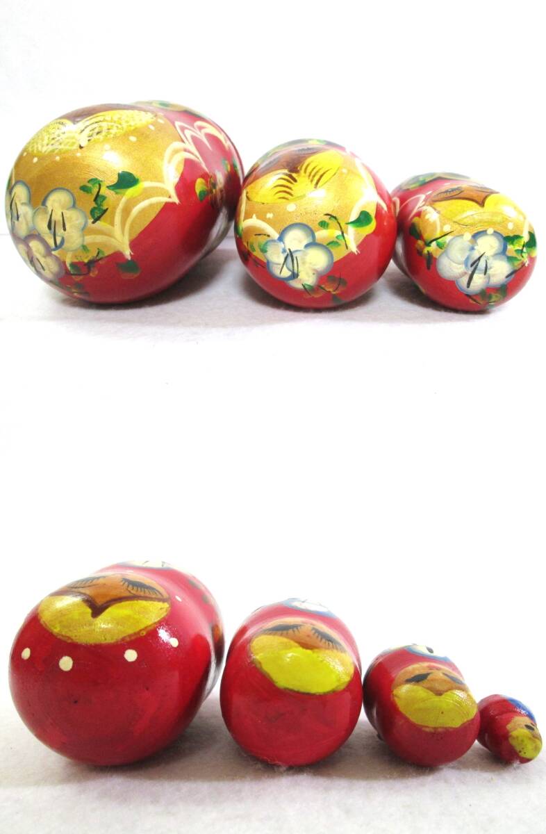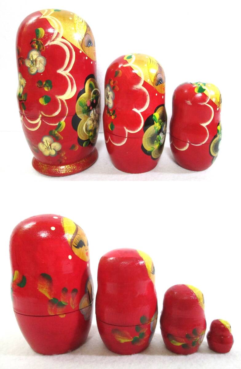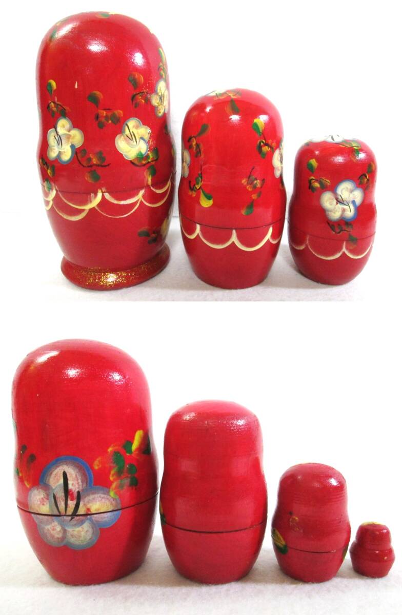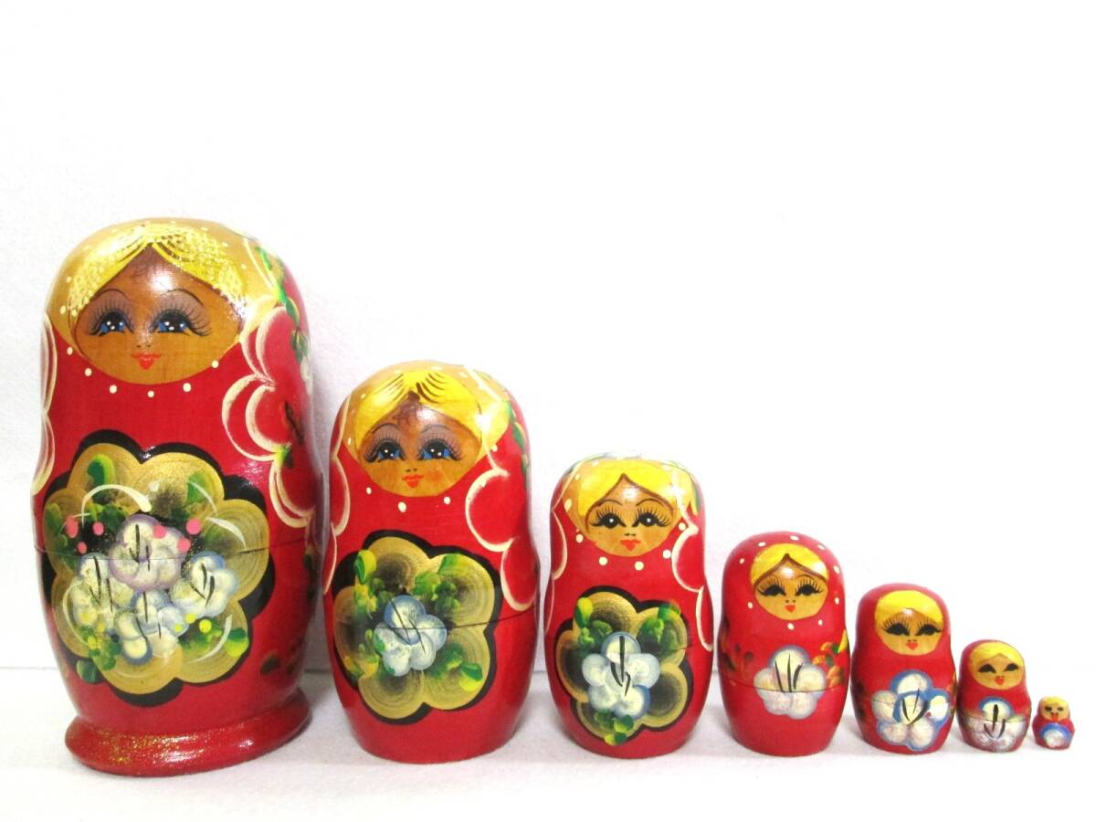 マトリョーシカ 7ピース 木製 人形 花柄 赤系 7体 7連 ロシア 工芸品 民芸品 縁起物 幸運 置物