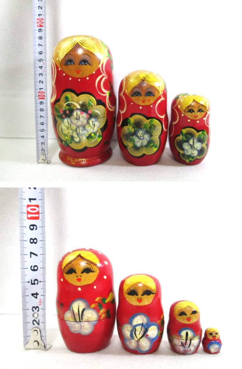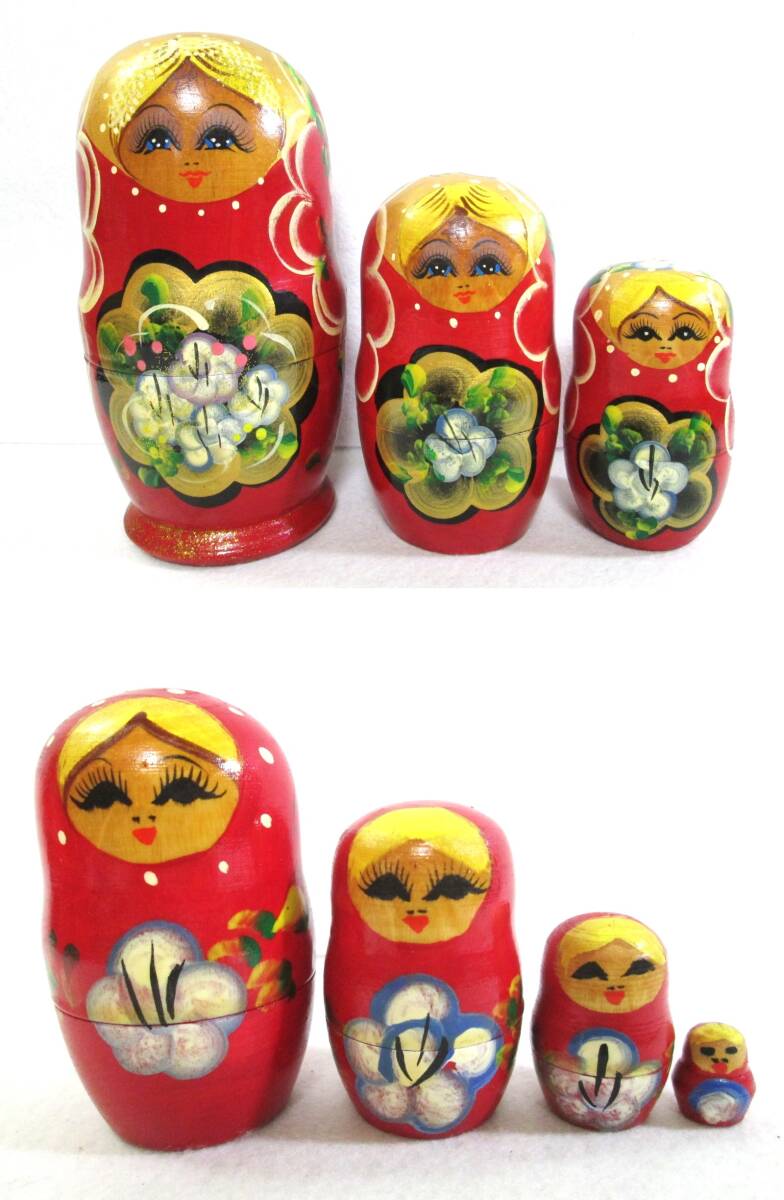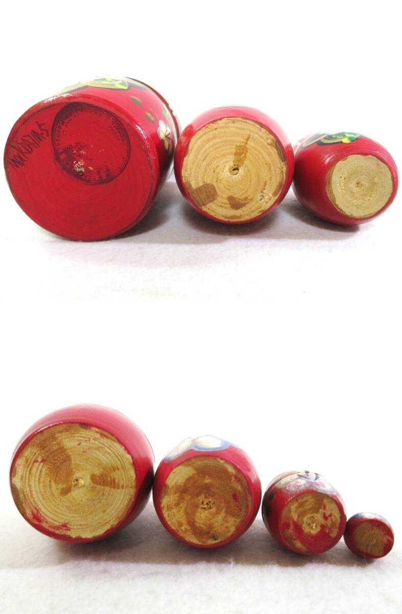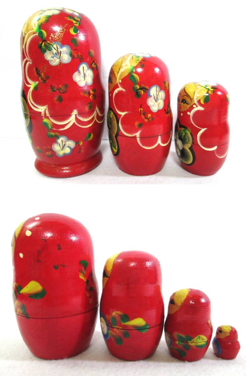 マトリョーシカ 7ピース 木製 人形 花柄 赤系 7体 7連 ロシア 工芸品 民芸品 縁起物 幸運 置物