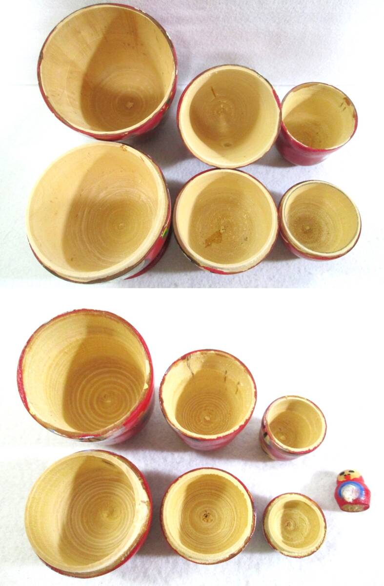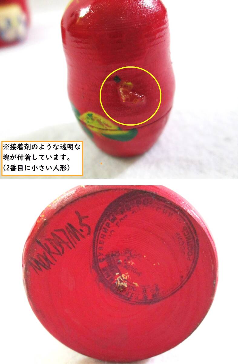 ・おそらく初期不良と思われますが、2番目に小さい人形に接着剤のような透明な塊が付着しています。(画像9上参照)