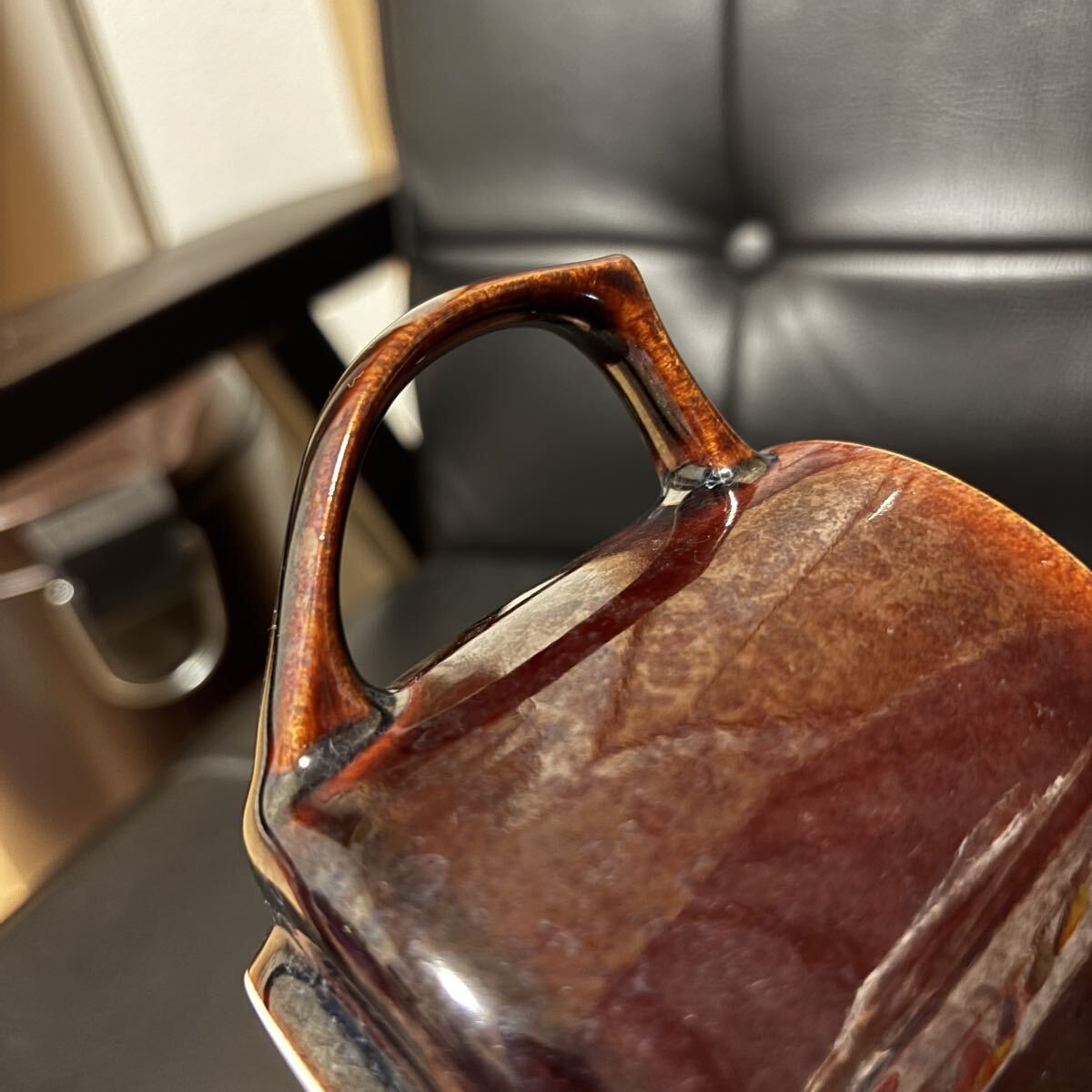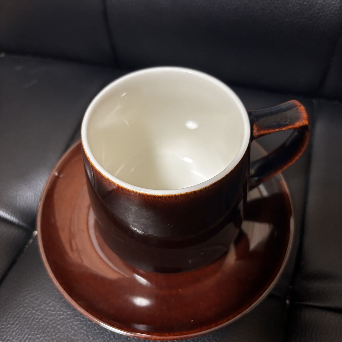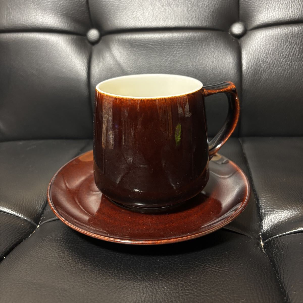 光の加減でブラウンや赤っぽく見えてとてもおしゃれなコーヒーカップ&ソーサーです。