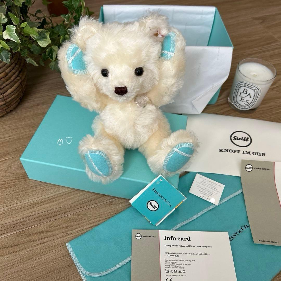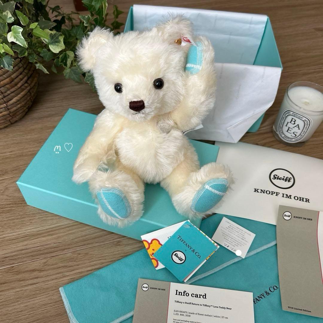 ティファニーと、世界で初めてテディベアを製作したとされるドイツのぬいぐるみブランド・シュタイフのコラボレーションによって誕生した「リターン トゥ ティファニー ラブ テディベア」。
