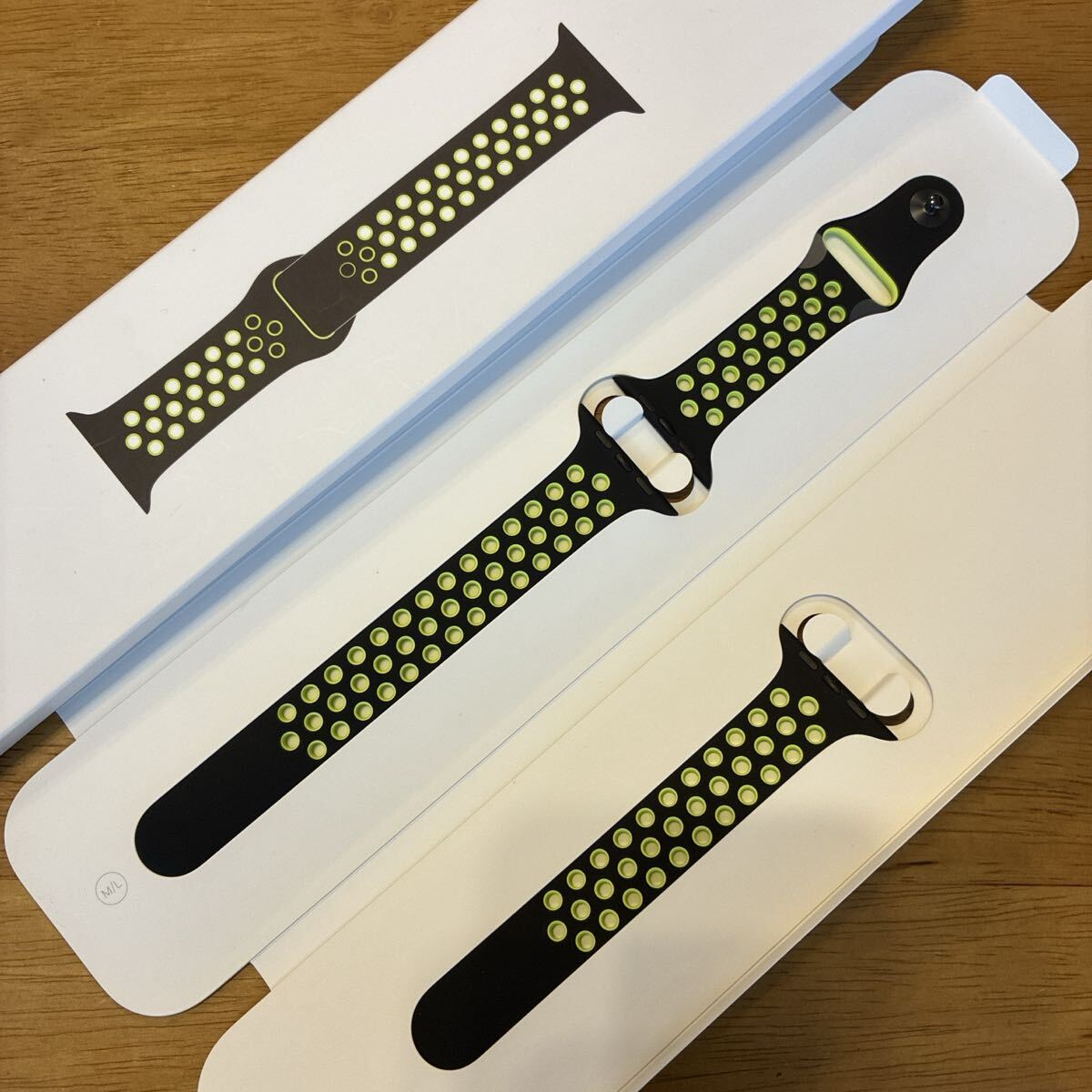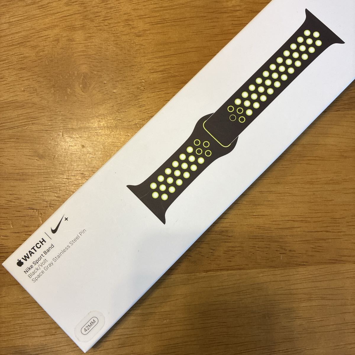Apple Watch Black/Volt Nike Sport Band ブラック/ボルト ナイキ スポーツバンド 旧42mm 廃盤となったカラーでございます。