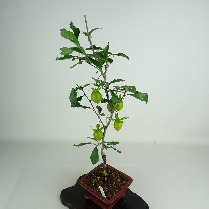 | ■植物ですので撮影時期や季節によって剪定などの手入れにより写真から変化がございます。撮影日をご確認のうえ、ご注文ください。 ■翌年の実付きをよくするために葉が落ちた後の11月末~12月にかけて摘果しています。お届けの商品にはロウヤガキの実がない場合がございます。 ■老爺柿の種類は沢山あり、品種の記載がない商品は仕入れの時点で確認ができておりませんので、その旨ご了承のほどお願いいたします。 【老爺柿盆栽】 開花時期は4~5月頃に花を咲かせます。雌雄異株で、実を成らすためには雌木と雄木が必要になります。小さな実が成る渋柿で、実が枝にぶら下がって成る特徴があります。老爺柿は沢山の品種があり、実の形状や色も様々で、丸い形から細長くとがったもの、大きさも大小があり、色合いも赤みを帯びた橙色から黄色、朱赤など豊富にあります。 |