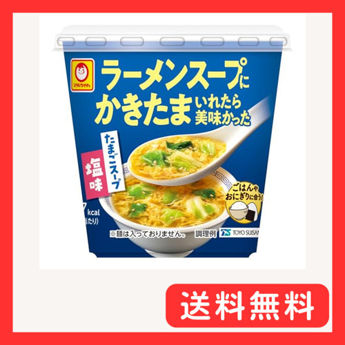 「マルちゃん ラーメンスープにかきたまいれたら美味かった たまごスープ 塩味 (カップ 6個 / インスタントスープ) 塩」▼2408290000058▼(商品説明)「マルちゃん ラーメンスープにかきたまいれたら美味かった たまごスープ 塩味 (カップ 6個 / インスタントスープ) 塩ラーメン風味 即席 フリ」▼2408290000000▼(商品説明)塩味・Style:塩味・かきたま入りの塩ラーメンをイメージちょっとジャンクでどこか懐かしい、ありそうでなかったラーメンスープ味のたまごスープです。麺は入っておりません。・ごはんやおにぎりに合うラーメンにたまごをいれて食べるあの味を再現。フリーズドライ製法のふわっとした本格かきたま入りです。・具材・スープのこだわり具材は、かきたま、キャベツ、ごまが入っています。チキンの旨みに香辛料がきいた塩ラーメン風味のスープです。・アウトドアのお供に常温保存可能で、さっと食べられます。キャンプやバーベキュー、登山、釣り等のアウトドアでも、温まる食事として便利にお召し上がり頂けます。忙しい時の食事やランチ、間食、夜食に、一人暮らしの方の仕送りにも。・商品詳細内容量: カップ 6個 / 原産国:日本 / メーカー名:東洋水産株式会社商品紹介 かきたま入りの塩ラーメンをイメージしたたまごスープ。麺は入