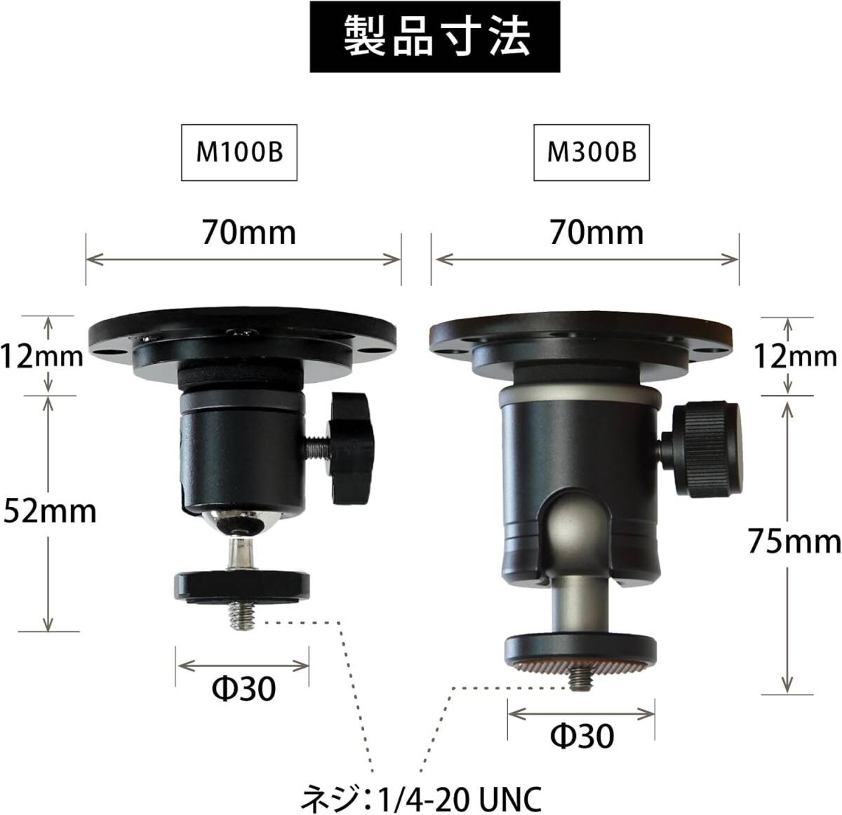 プロジェクター天吊金具 マウントプレート 耐荷重3kg 1/4インチネジ (シャフトなし) 三脚 カメラ 天井 角度調節360° ブラック PMB-M300B