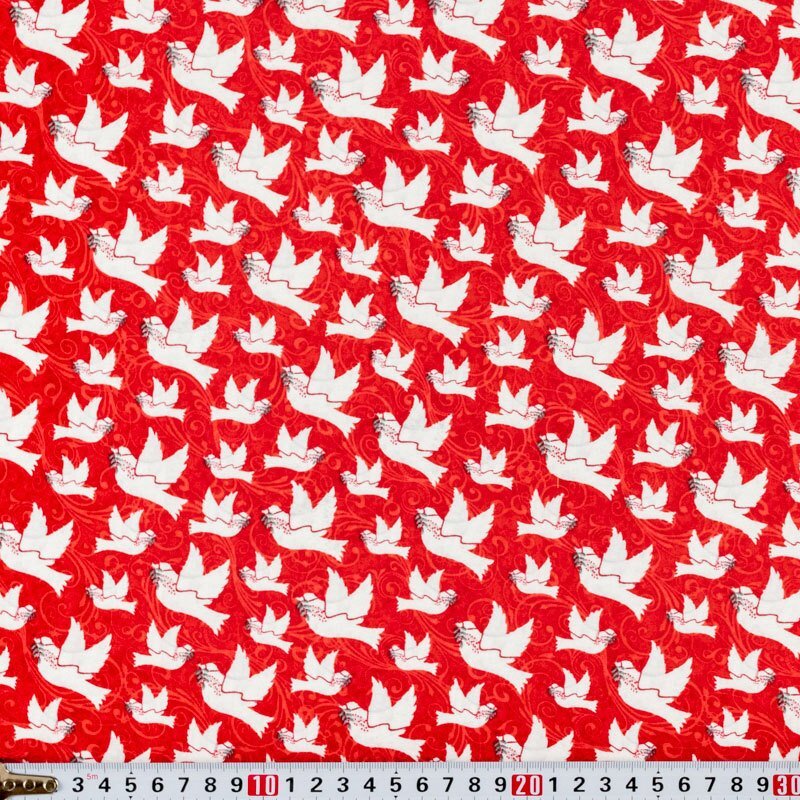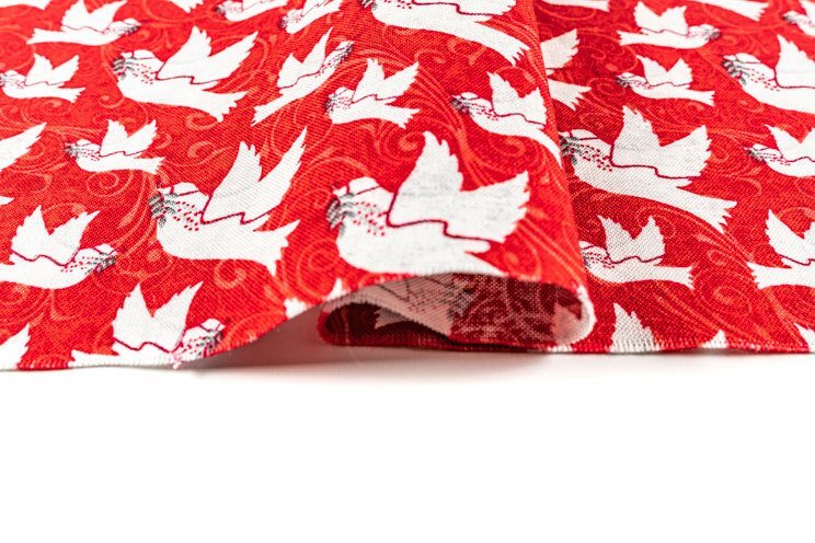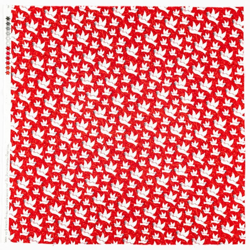 赤い地に白いハト、素朴な絵柄ですが、出来上がった物が可愛く、オシャレに見えますよ。