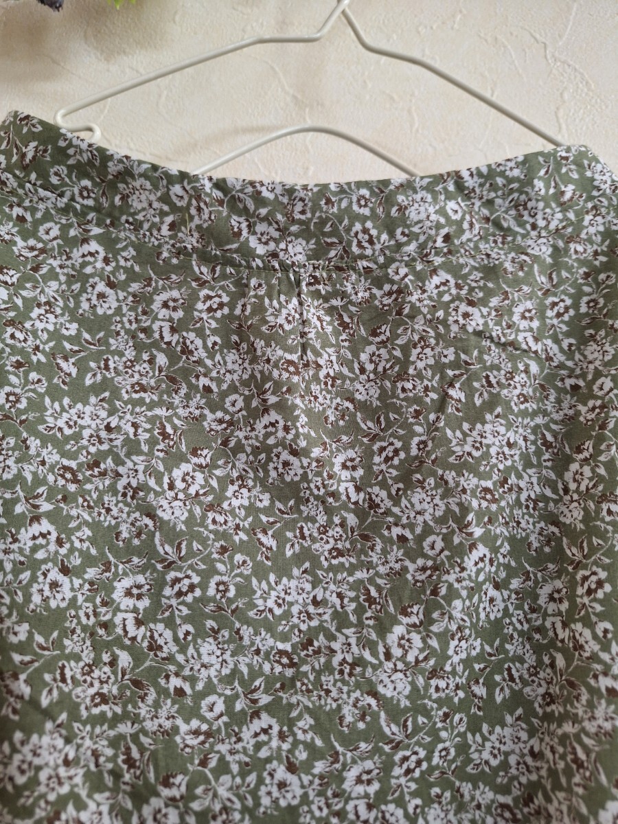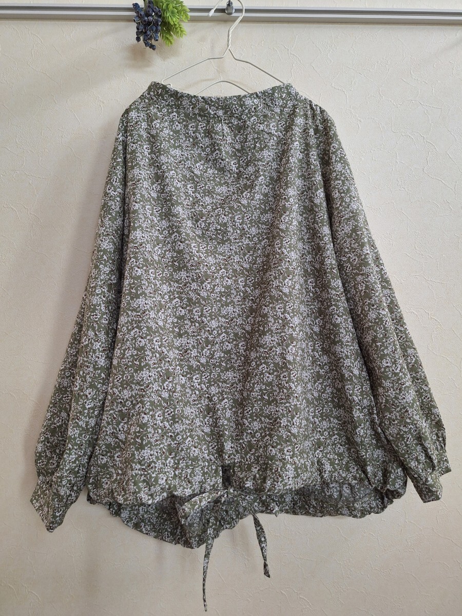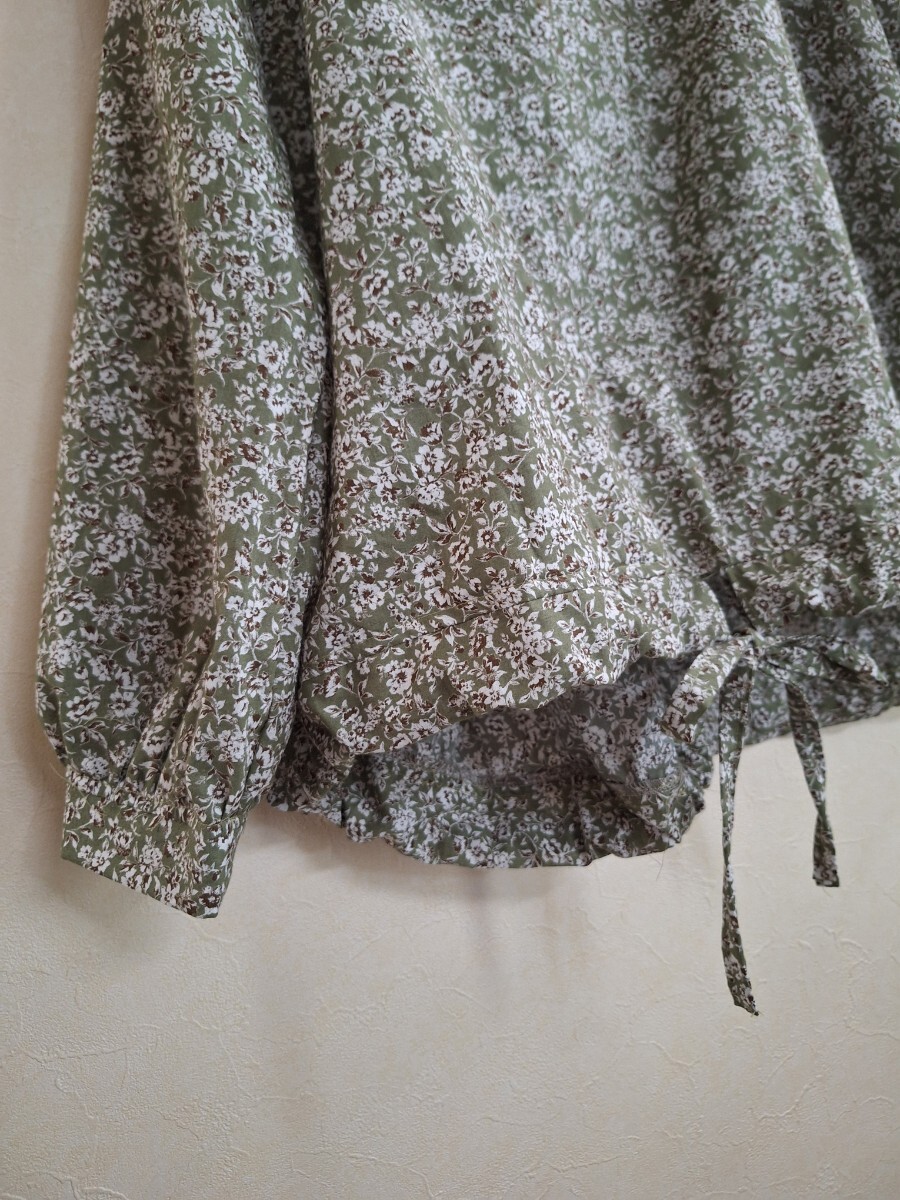 薄手の長袖ですので寒くなったら ベストやカーディガンと重ねてもアクセントになる華やかな花柄ですが色味が抹茶で落ち着いています。
