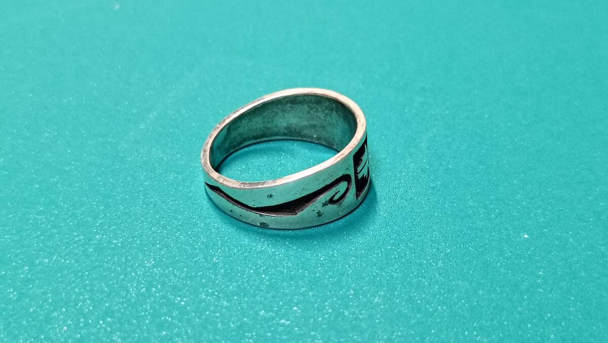 | 商品説明 | 1998年頃にインディアンショップで約45,000円で購入しました。 3年間ほど休日に使用していました。 サイズは縦と横の大きさが違ったのですが、直径18.4㎜~18.9㎜でした。 17号から18号の指輪と思われます。 ホピ族の伝統的なオーバーレイ技法を用いて作られたリングです。 |
