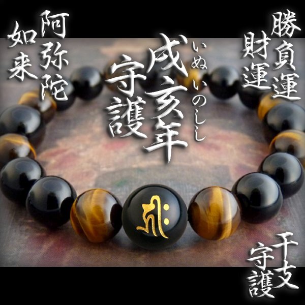 ◆勝運◆金運・成功・仕事運 戌・亥年生守護 阿弥陀如来 黄虎目 ★5m2015a1