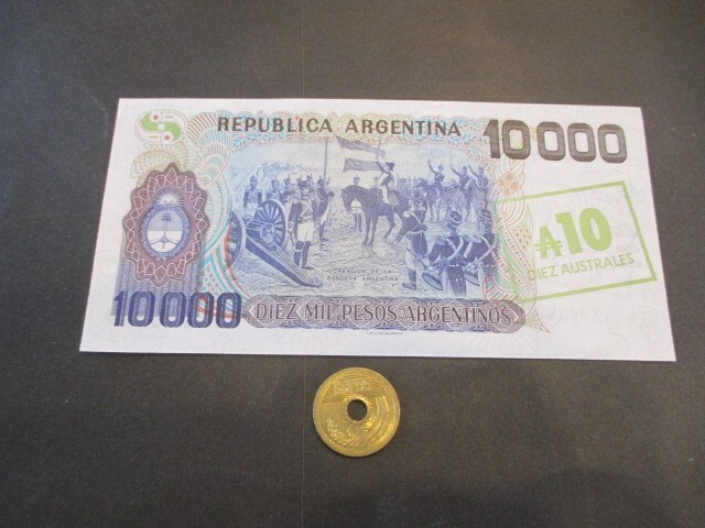 未使用 アルゼンチン 1985年 デノミ加刷最高額 10アウストラル