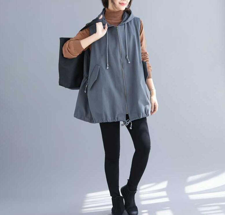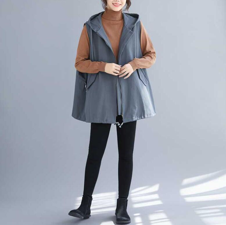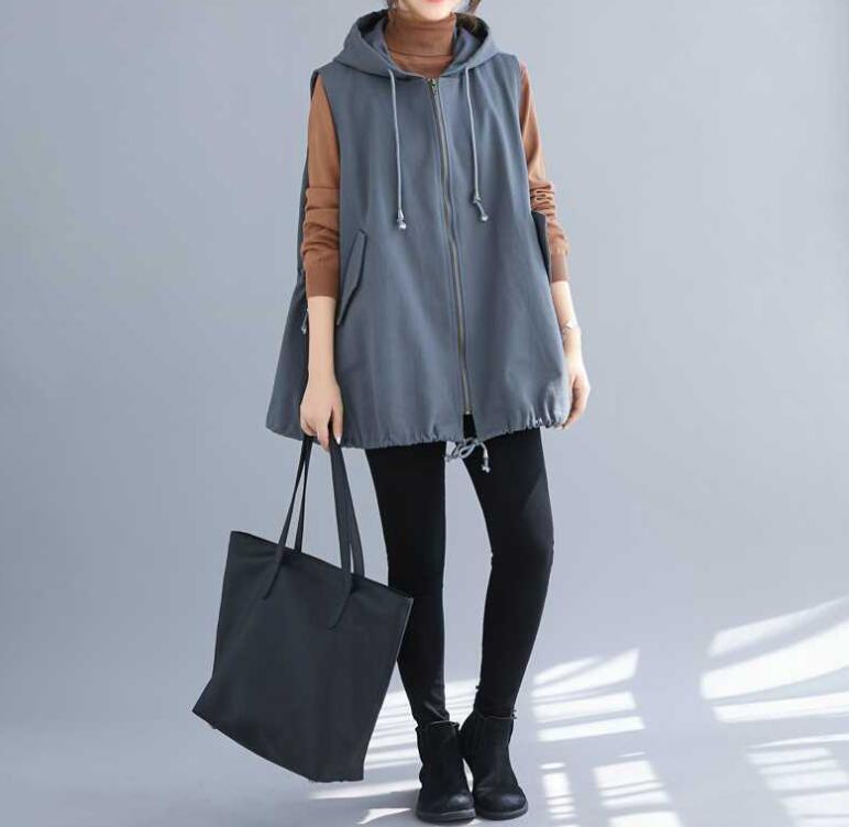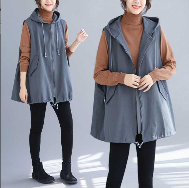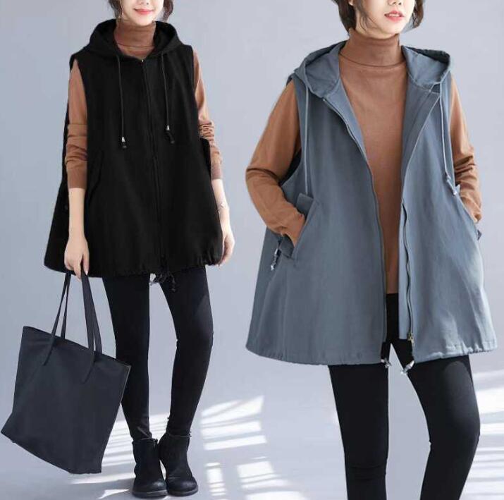 人気品新品レディース オシャレ カジュアル ゆったり大きいサイズ フードつき 無地 袖なし ベスト