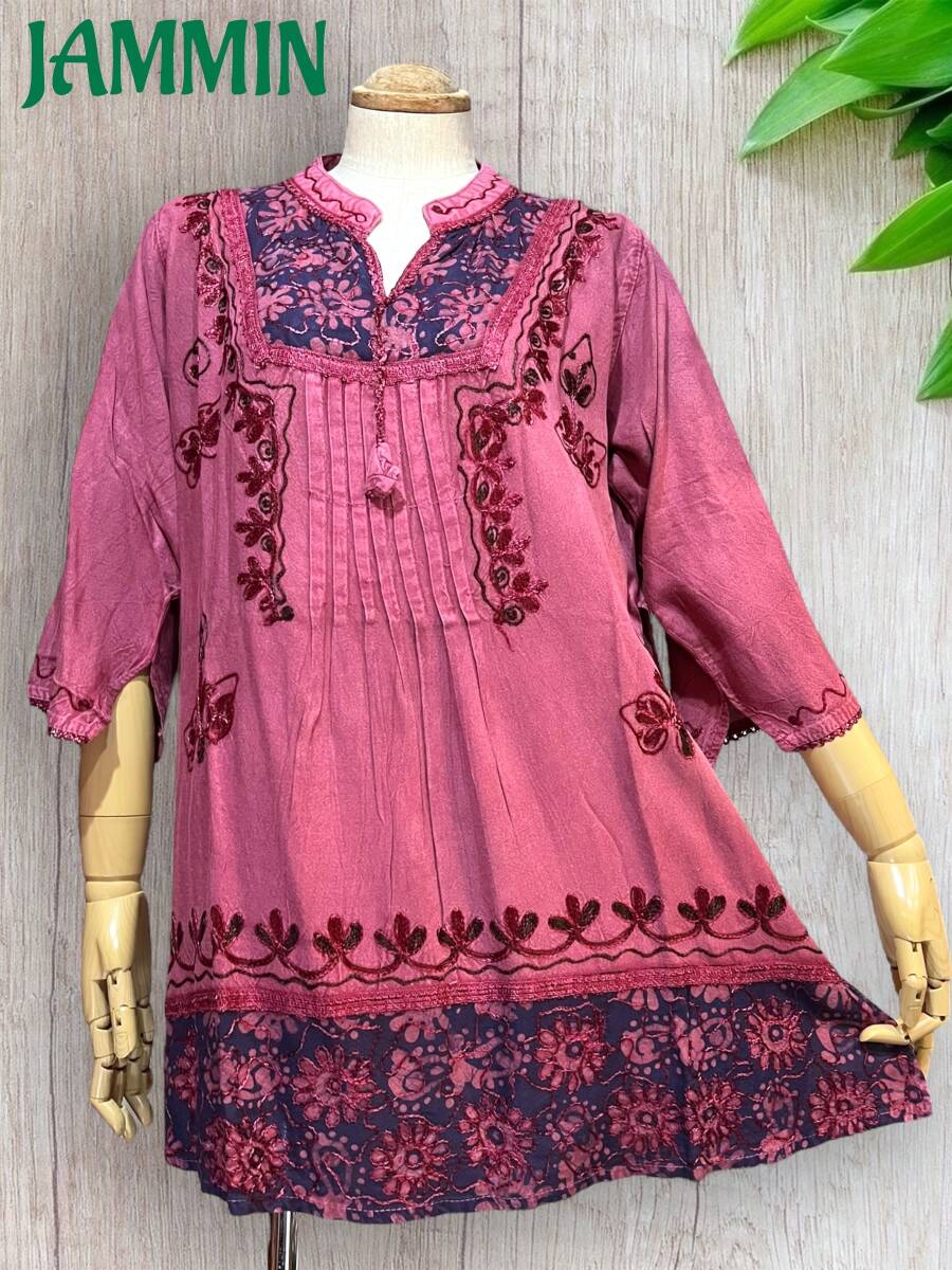 刺繍入りチュニック ピンク アジアン ヒッピー エスニック 個性派