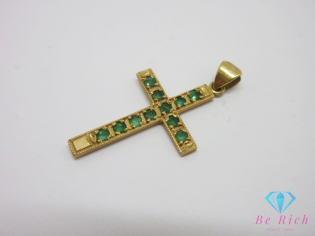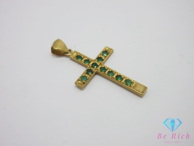 | K18 YG カラーストーン 付 クロスモチーフ デザイン ネックレス トップ ヘッド のご紹介です | |||||