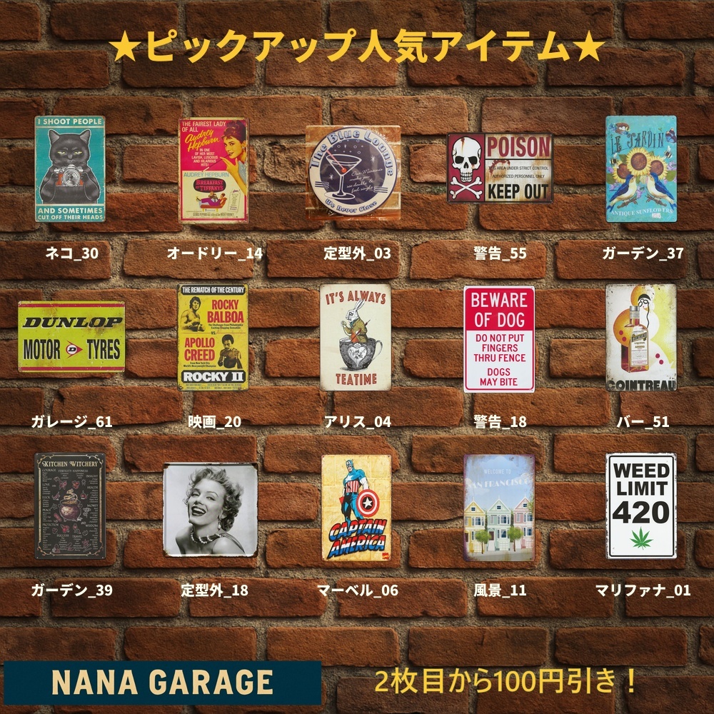 海外直輸入のヴィンテージ風ブリキ看板を中心に、
