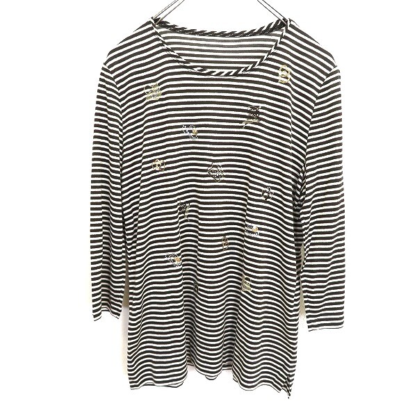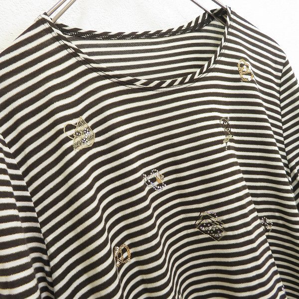 | 商品名 | #a レリアン Leilian カットソー 11 こげ茶 白 ボーダー ラメ 七分袖 ポイント刺繍 ビーズ 日本製 レディース [963020] k01 |