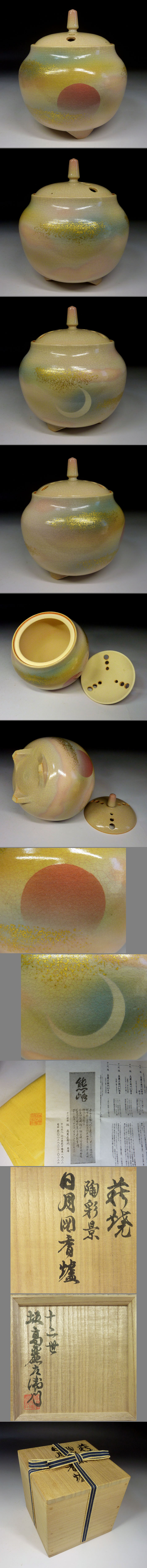 概要 | 十二世・坂 高麗左衛門の萩焼陶彩景日月図香炉です。 |