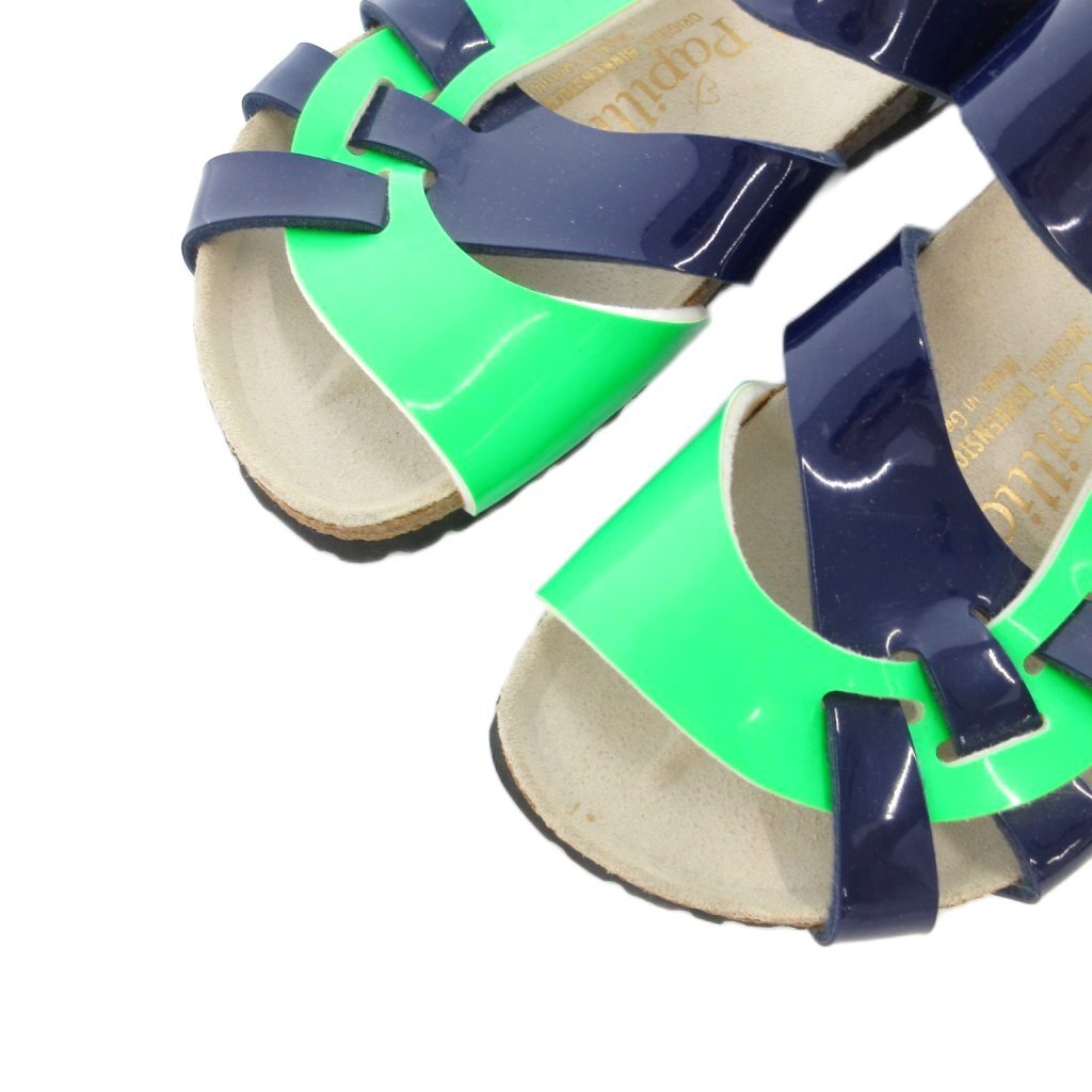 ビルケンシュトック BIRKENSTOCK パビリオ PAPILLIO サンダル スライド 23cm 黄緑 ライトグリーン 紺 ネイビー /GV レディース