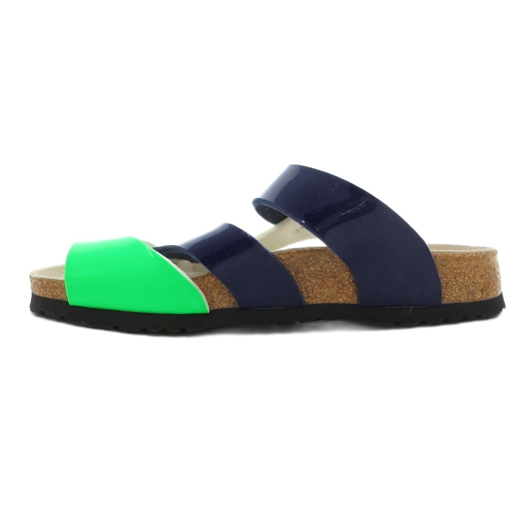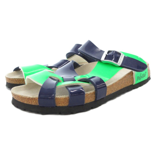ビルケンシュトック BIRKENSTOCK パビリオ PAPILLIO サンダル スライド 23cm 黄緑 ライトグリーン 紺 ネイビー /GV レディース