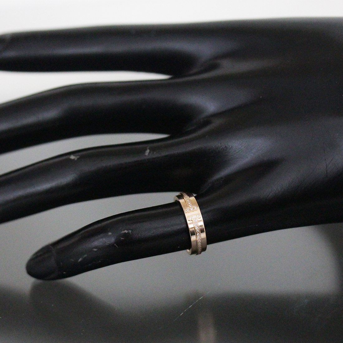 ○ ティファニーの高品質なダイヤをぐるっと一周贅沢に使用したTWOリングです。温かみのあるピンクゴールドにダイヤモンドが輝き、お手元に彩りを与えます。ブランドアピールにも適しているお品。サイズが小さめのお品のためピンキーリングとしてのご使用もオススメです。
