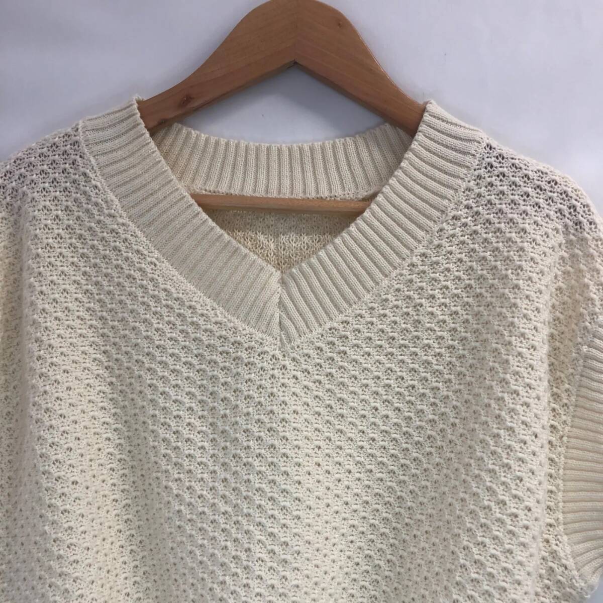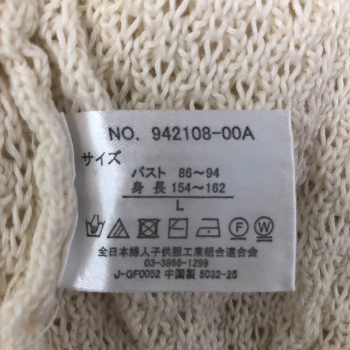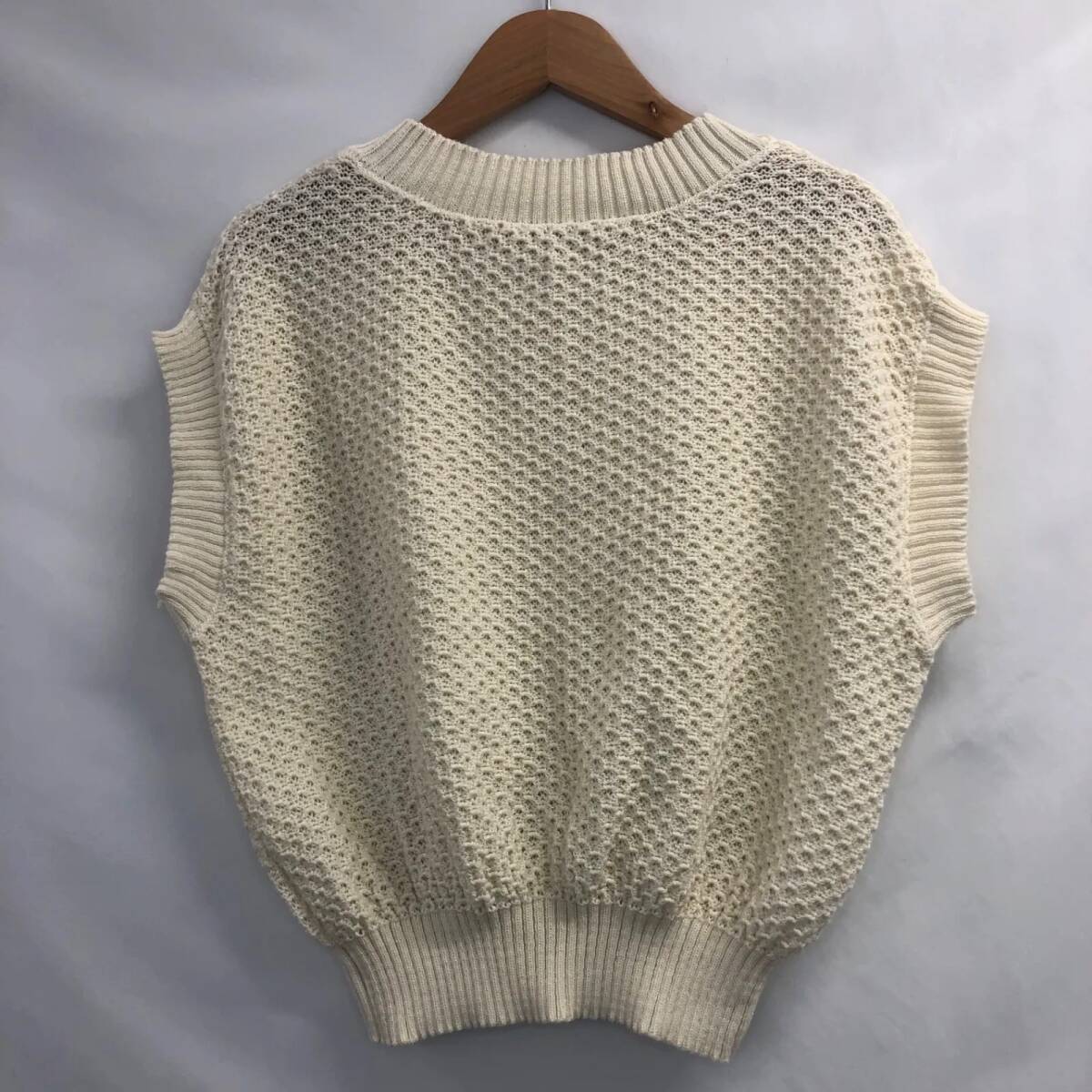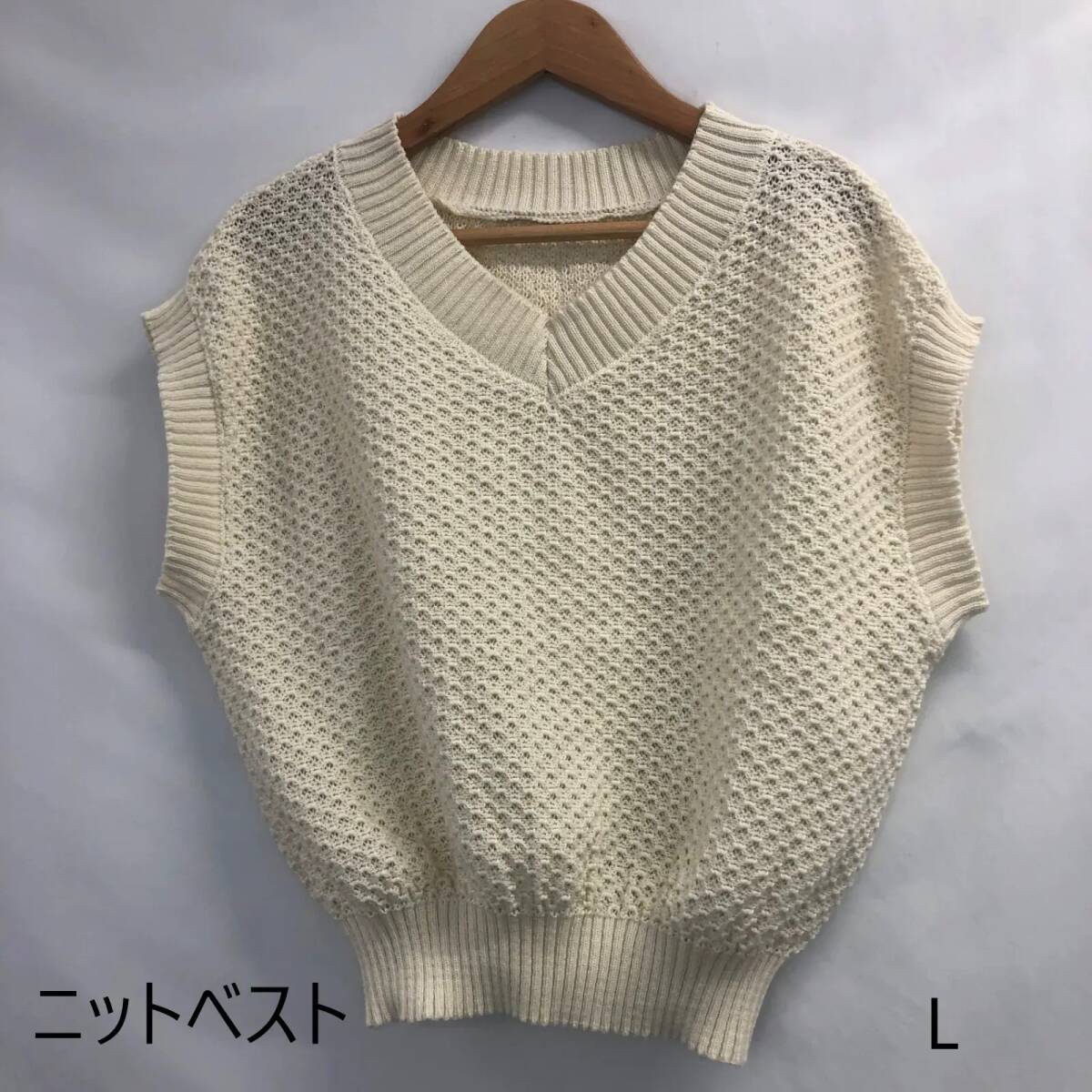 全日本婦人子供服工業組合連合会 レディース ニットベスト メッシュニット オフホワイト 網目 Lサイズ