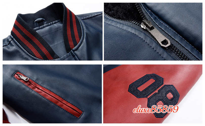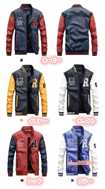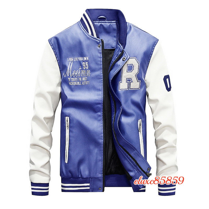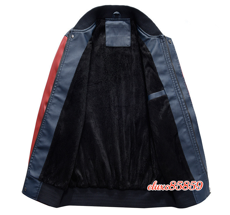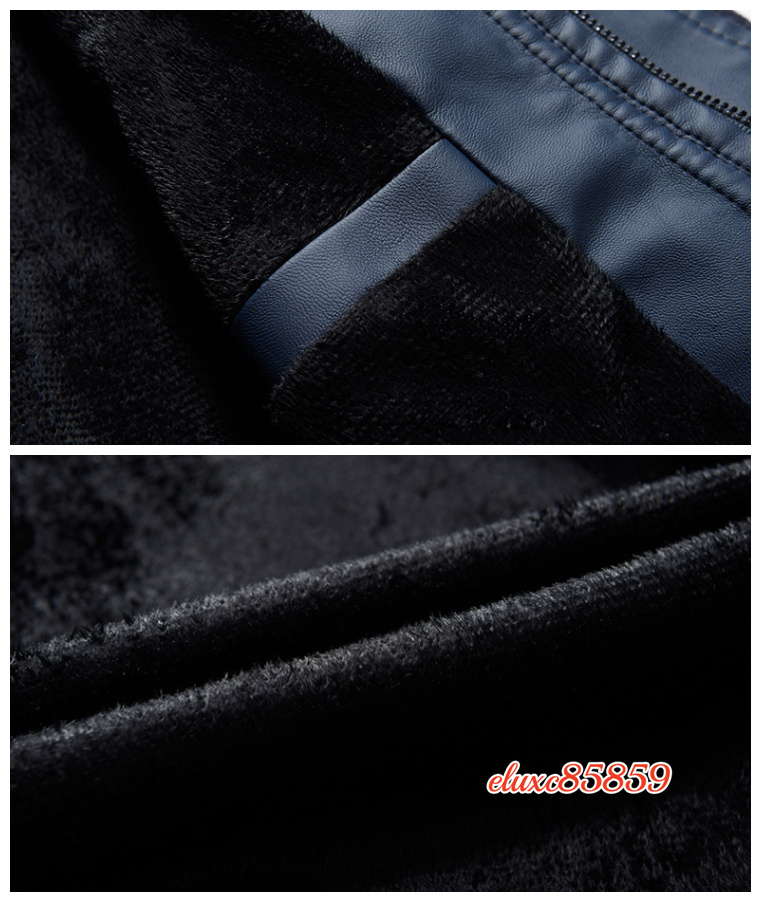 秋冬 メンズ ベスジャン PUレザー ライダースジャケット 裏起毛 立ち襟 切替 ジャンパー ブルゾン バイクウェア ブルー サイズ選択可M