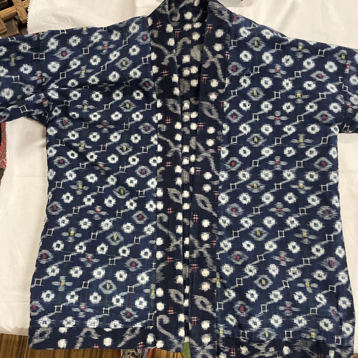 柄違いの絣でバランス良く出来た手作りの絣の上着です。