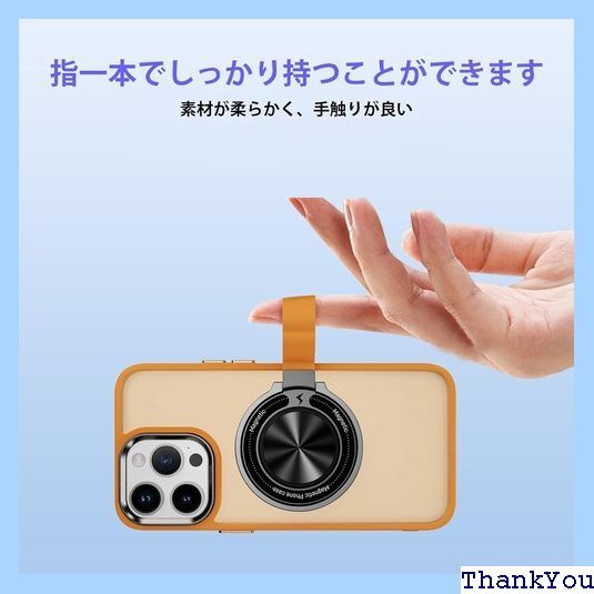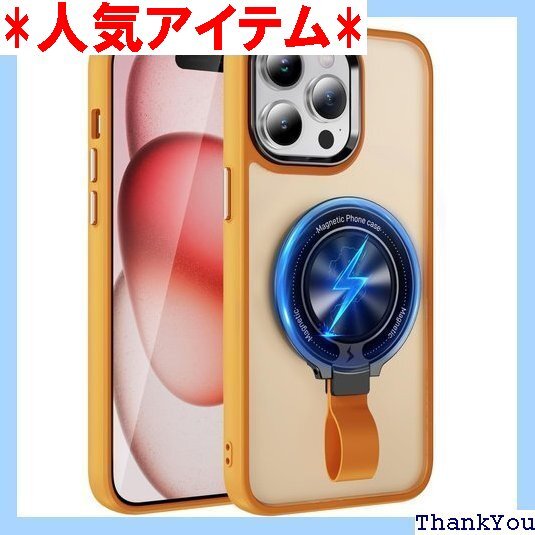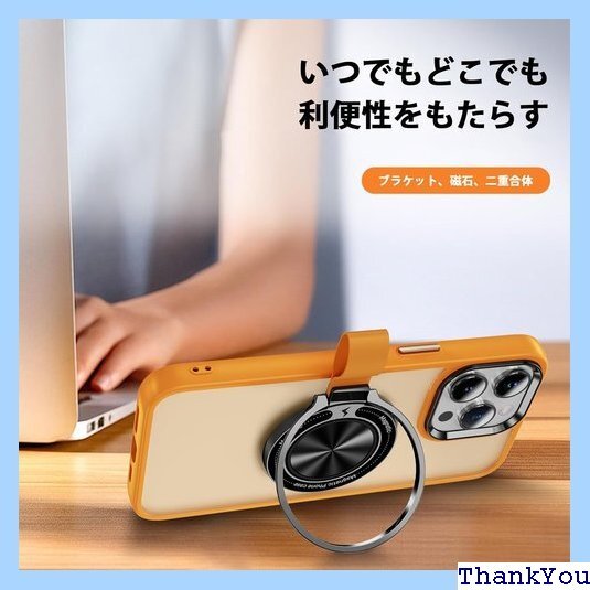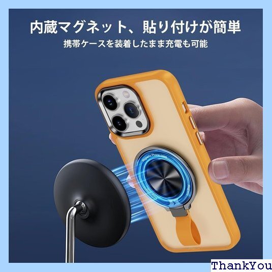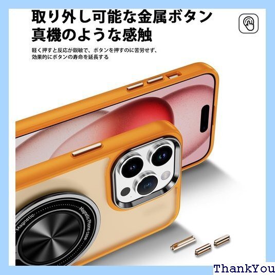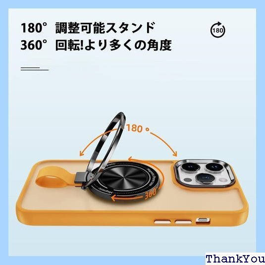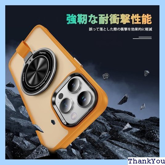 iPhone 15 Pro Max Case 用 ケース リング 耐衝撃 米軍MIL規格取得 半透明 黄ばみなしマグネット搭載 落下防止 指紋防止 TPU+PCカバー ストラップホール付き ワイヤレス充電 オレンジ+スタンド機能 12-ip15pm-05 701