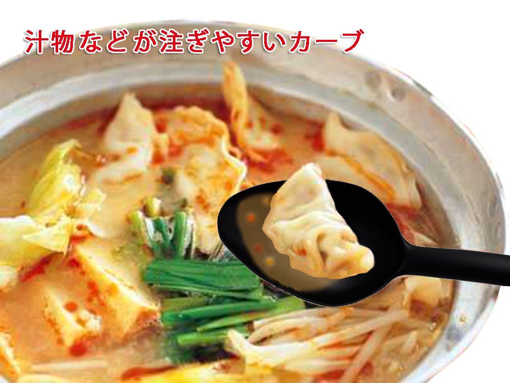 より ●お玉と盛りつけスプーンの機能を生かした形状 ●IH料理研究家の脇雅世さんのアイデアいっぱいの【O.E.C.】シリーズ ●鍋の機能を発揮させる優秀なキッチンツール ●十分な深さがあるので、スープの盛り付けにも ●スプーンの先部分では細かい作業ができ、上手に盛り付けることができる ●卓上でも使用できるスタイリッシュなデザイン ●汁物などが注ぎやすいカーブ ●フラットな部分がなべ底にフィット ●熱に強いナイロン素材を採用 ●一体型なのでお手入れも簡単 ●握りやすく使いやすい長さのハンドル ●ハンドル近くのカーブの注ぎ口で一杯約70mlのスープがすくえる ●細かく、やわらかい具材もくずさず、ラクラクすくえる