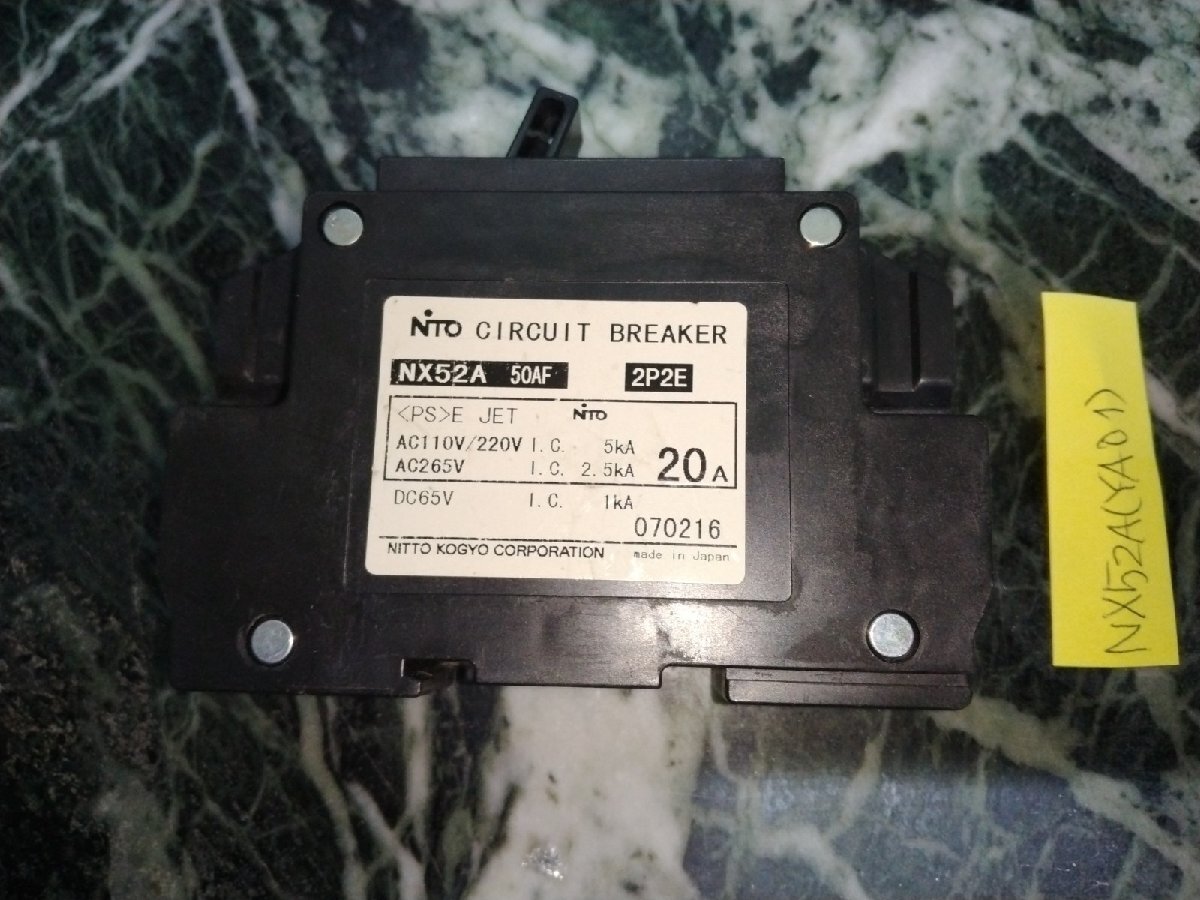 日東工業 ノーヒューズ遮断機(スリムサーキットブレーカ)NX52A(YA01) 2P20A(2P2E) 箱無し付属品無しです。