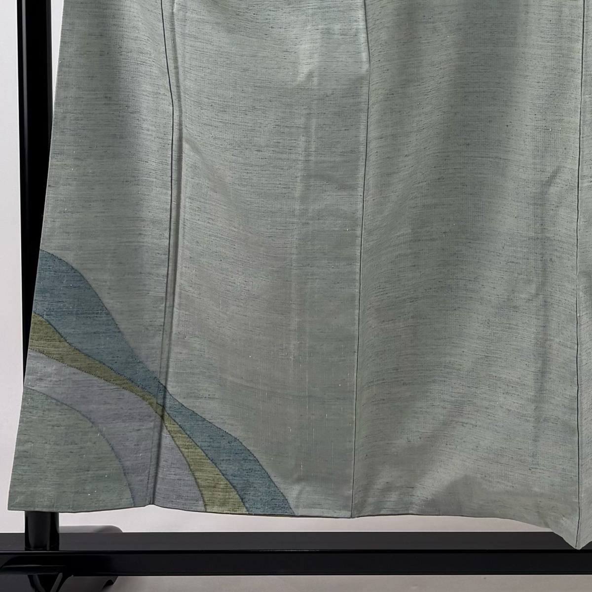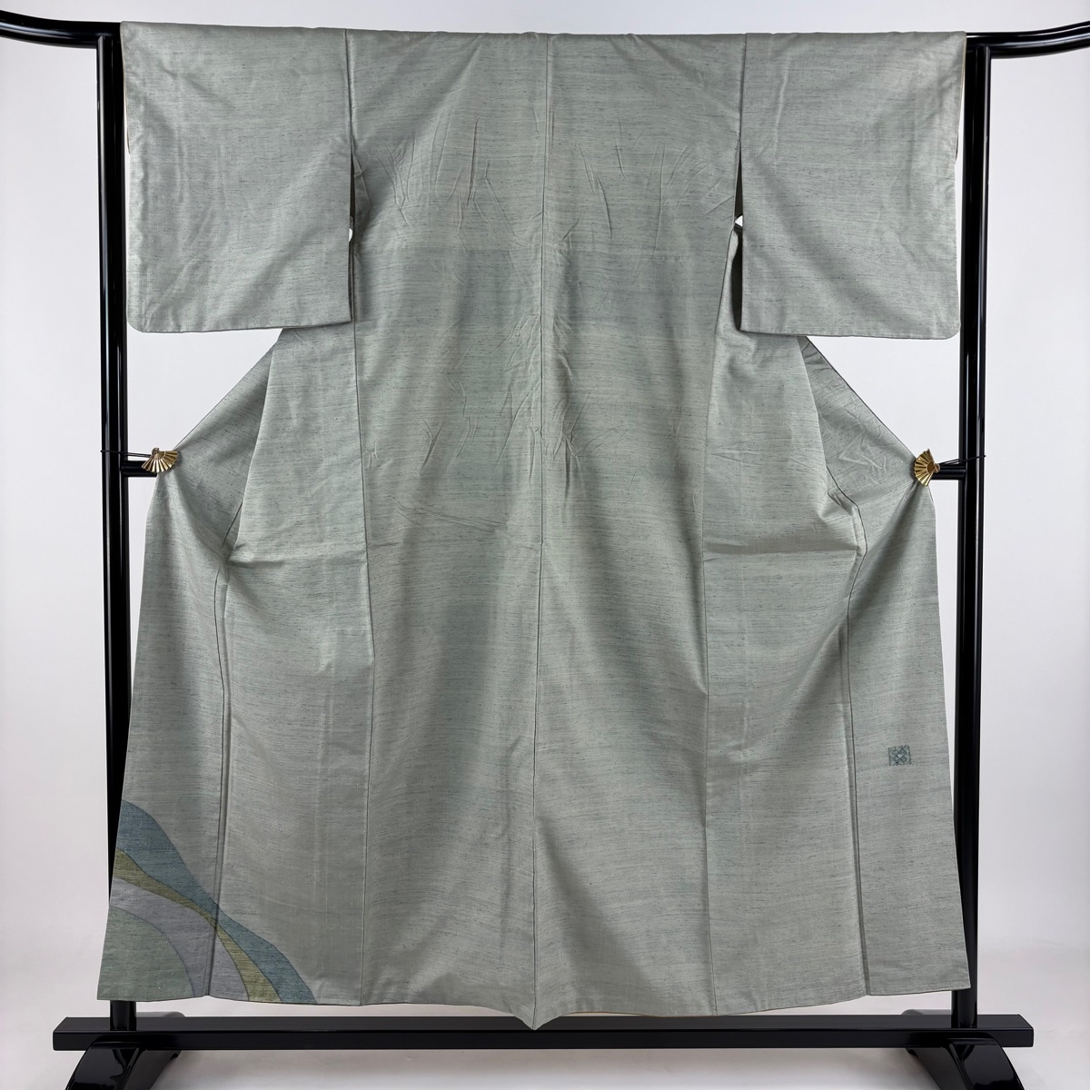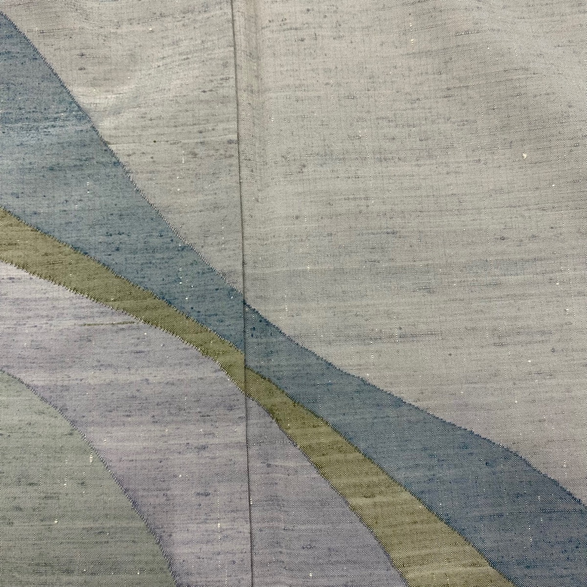 | 付下げ 名品 落款 能州紬地 幾何学模様 薄緑 袷 身丈156 裄丈63 S 正絹 【中古】 |