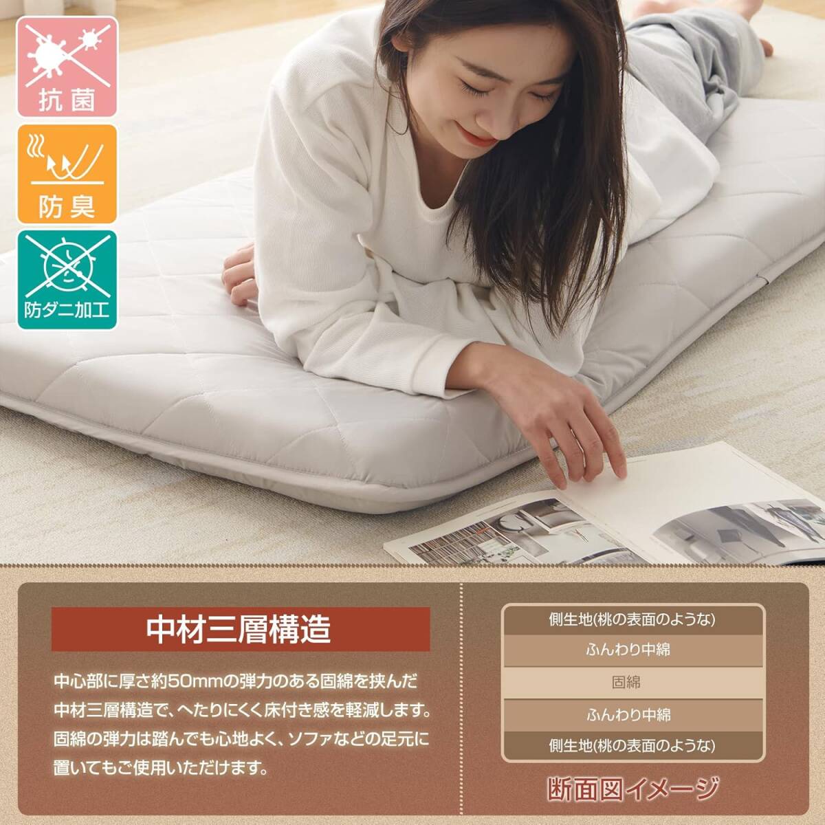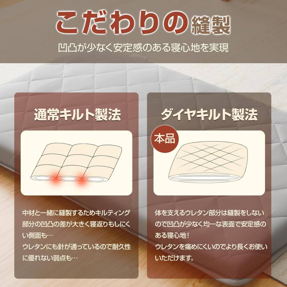 【圧縮してコンパクトにお届け】 商品を圧縮して簡易梱包でお届けしますので、マンション住まいの女性でも受け取りが安心です。 ※3つ折にしてお届けするため、若干折れシワのある場合がございますが、時間の経過により回復していきますのでご安心下さい。ご購入後12ヶ月のメーカー直営品質保証。初期不良もその後の不具合がございましたら、弊社までにご連絡ください、無償交換が対応いたします。L131