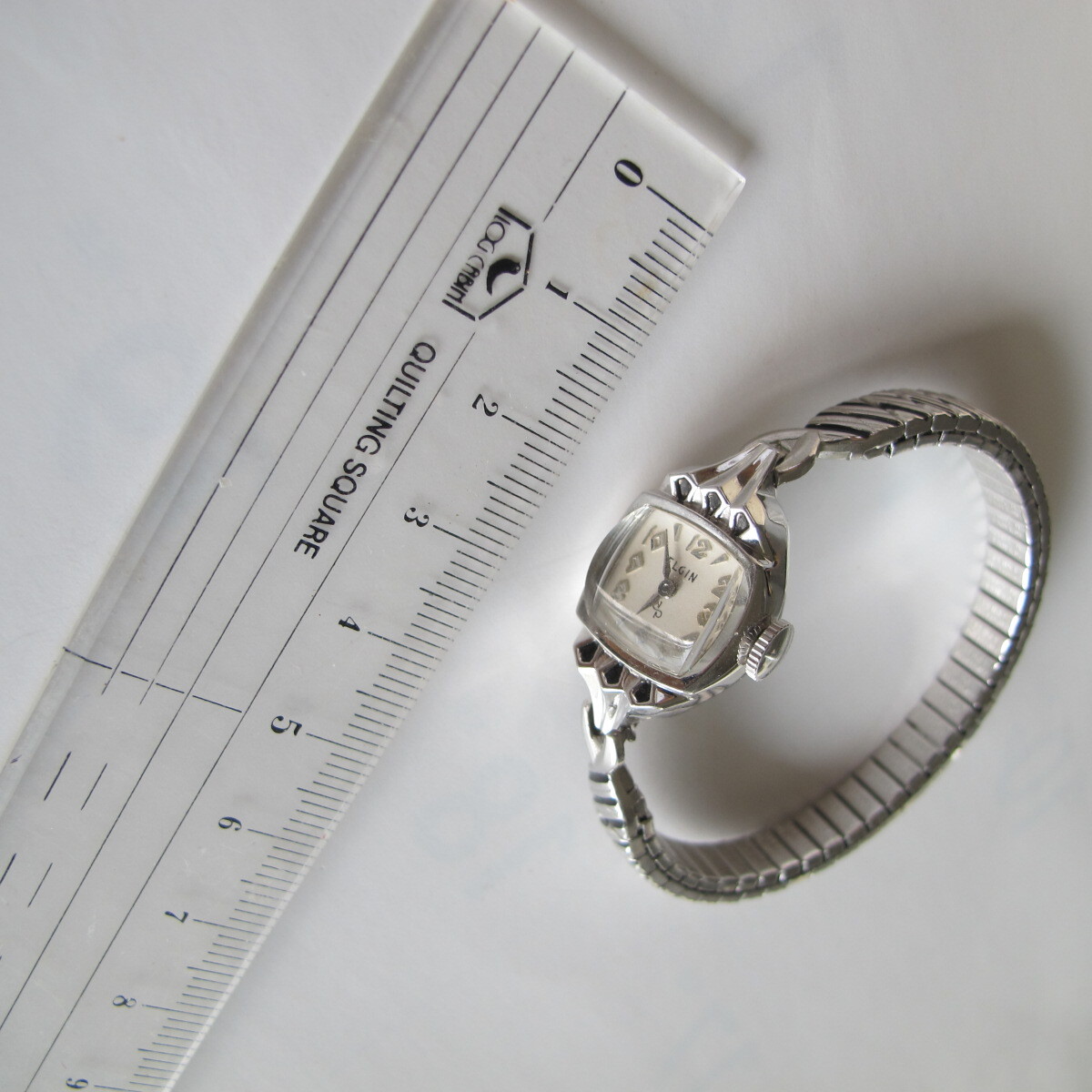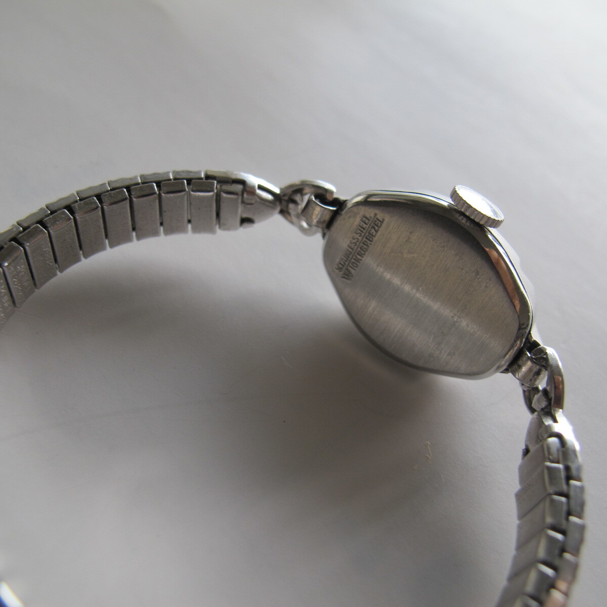 時計のサイ ズ | : | 縦 約24mm(バンド取り付け部分を含む)x 幅15mm(竜頭を含まず) バンドを含めた腕回り: 約15cm バンドは伸縮します。 素人採寸ですので多少の誤差はご了承下さい。 |