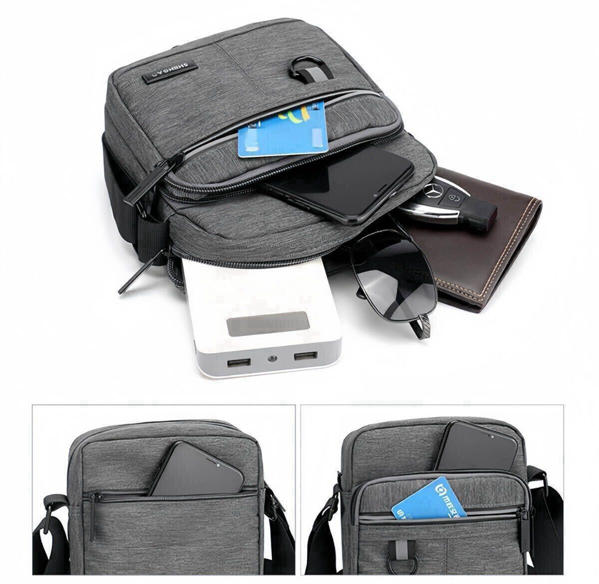 スマホ、長財布、キー、タバコ、サングラスなども折り畳み傘も入るのに、コンパクトでちょうどいいサイズ外側、内側どちらも充実したポケット付きで驚きの収納力しっかり分けて整理上手で荷物すっきり!軽くて便利!両手も空いてラクラク♪ちょっとしたお散歩にも