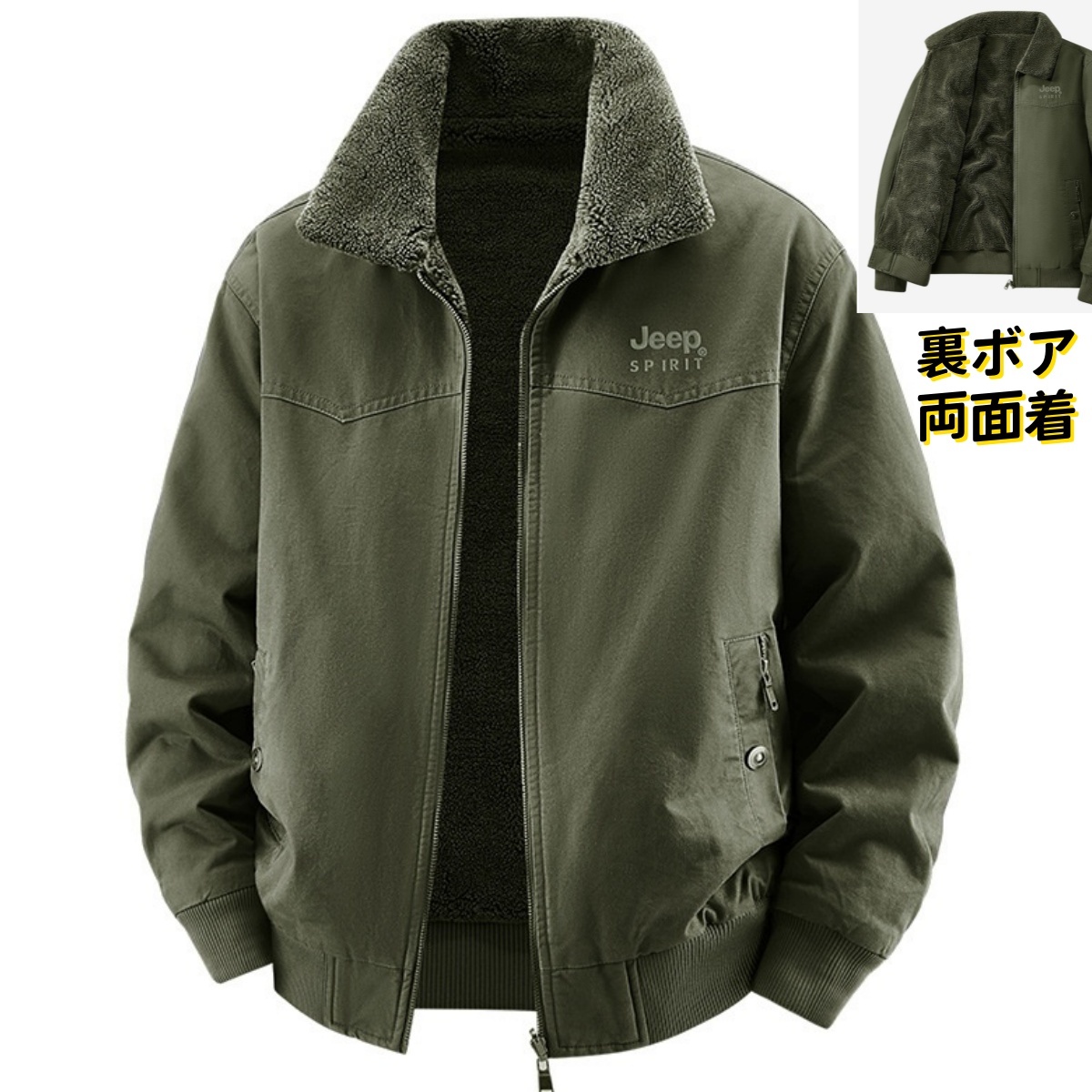裏フリース フライトジャケット 両面着 リバーシブル 防寒コート 新品・メンズ 裏ボア ワークジャケット アウター アウトドア 作業着 作業服 ジャケット ブルゾン 防寒ジャンパー【JP-2519】グリーン XL