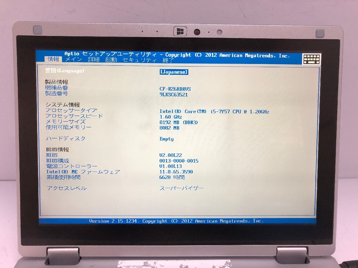 ジャンク/ Panasonic CF-RZ6RDRVS Intel Core i5-7Y57 メモリ8.19GB ストレージ無し 【K22810】