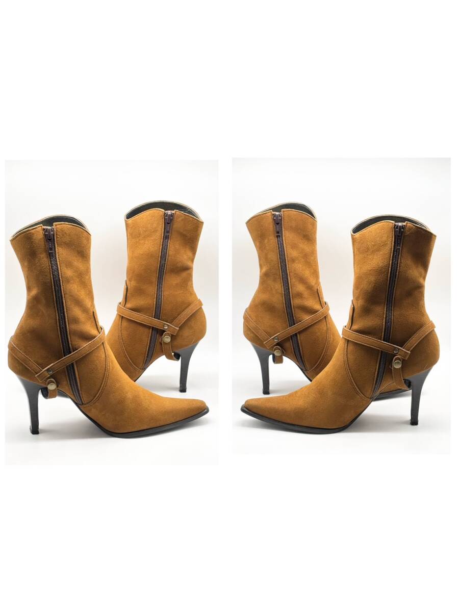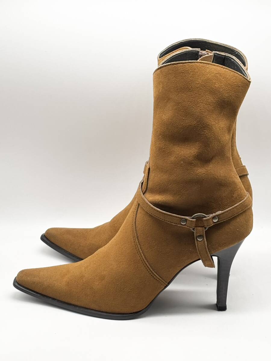 【FLAPPER】フラッパー ブーツ ショートブーツ Mサイズ 約23㎝~24㎝相当 ヒール高 約9㎝ キャメル 茶色 レディース