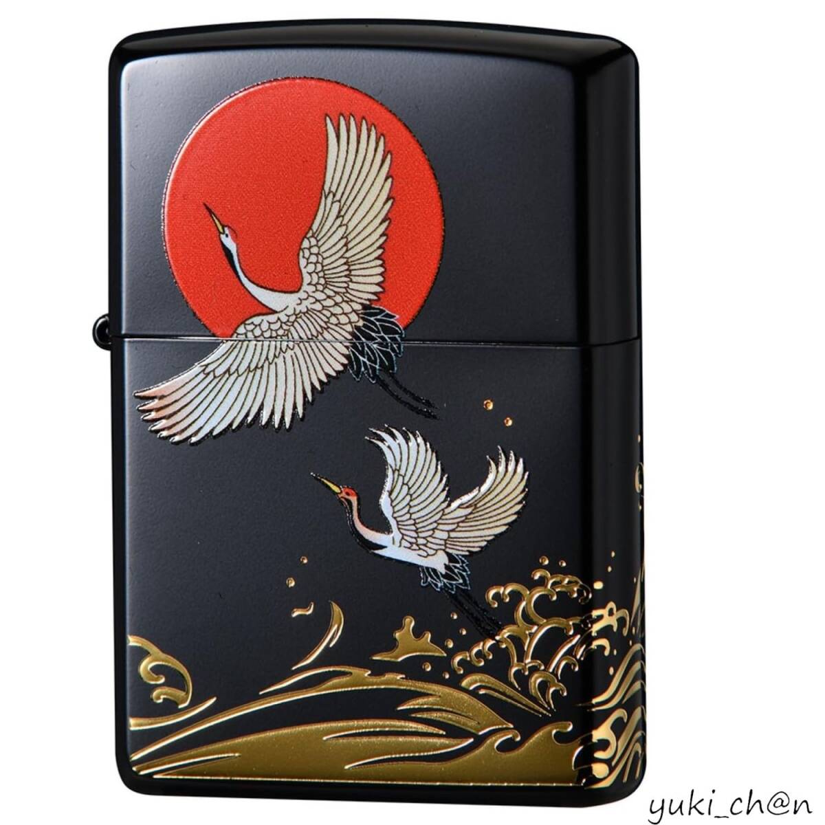 ZIPPO ジッポー ライター マルカイ 和柄デザイン 鶴 プレゼント ギフト 贈り物 お土産 おしゃれ ブラック 5.5x 3.8x 1.5cm